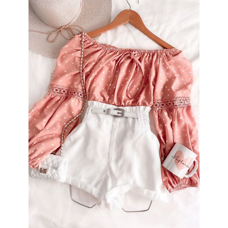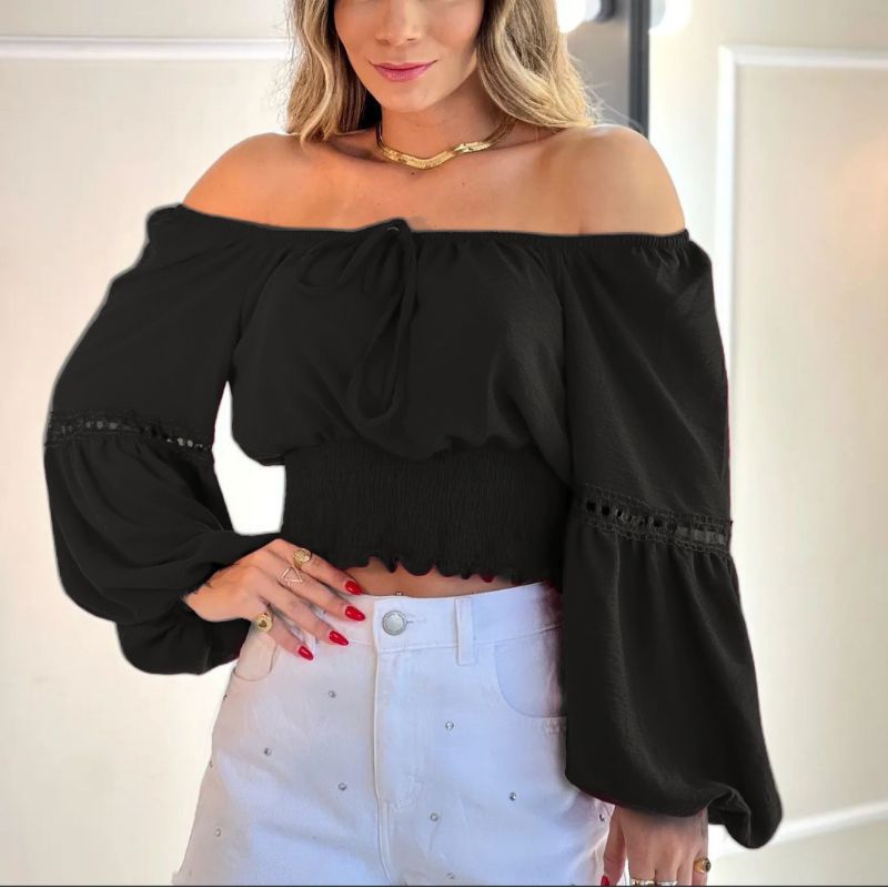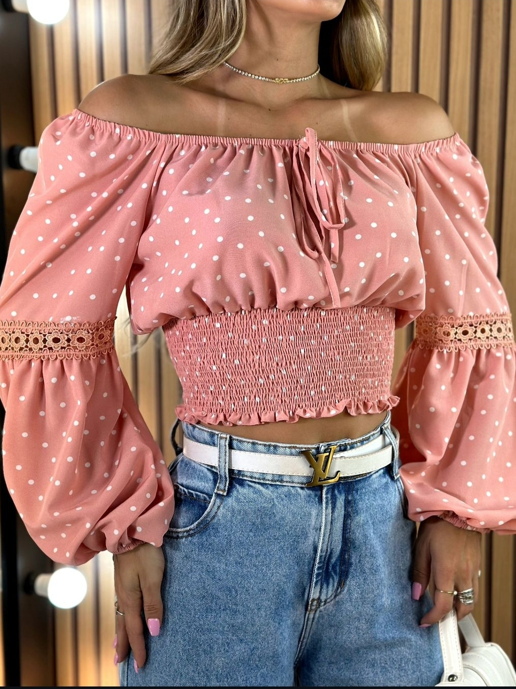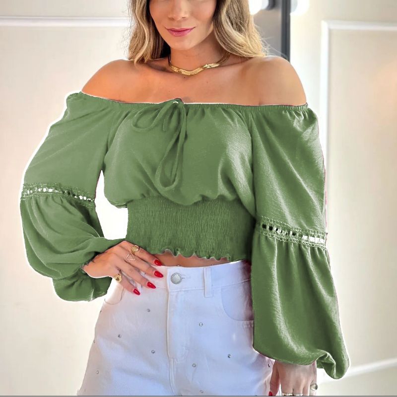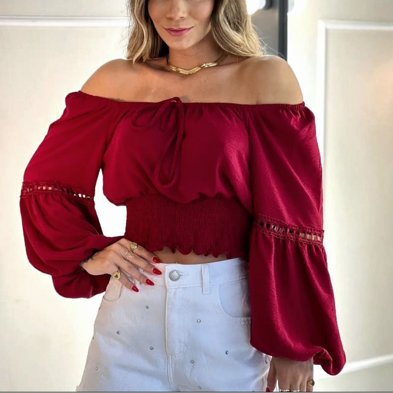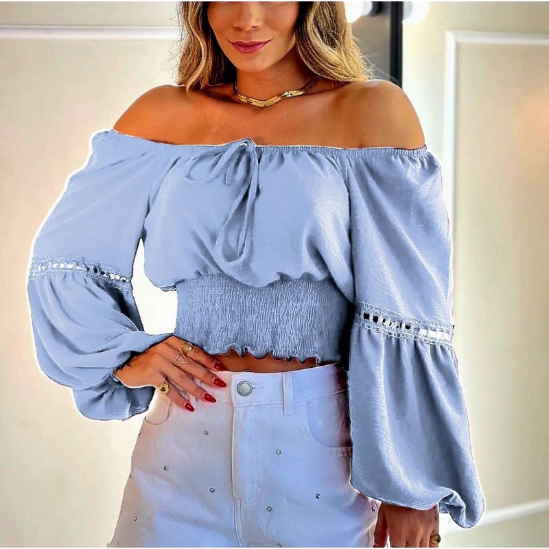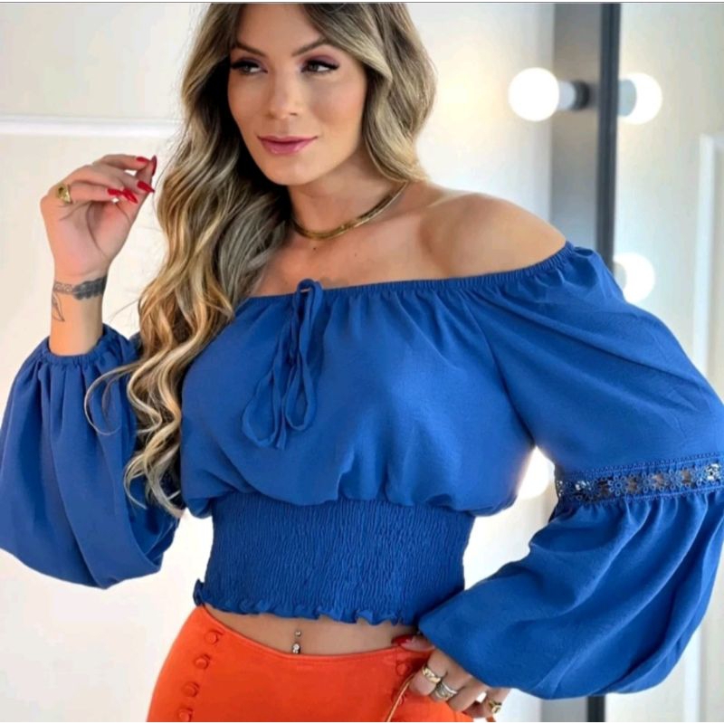Cropped Femenino Manga Princesa com Elastico na cintura