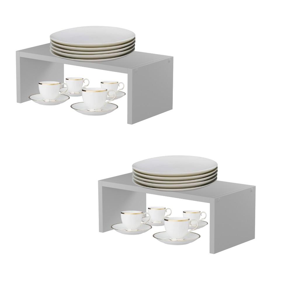 Kit 2 Organizador Médio Prateleira Divisória de Armário Cozinha Para Pratos Copo Compras MDF Branco