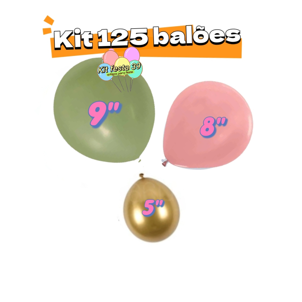 Kit 125 Balões Bexiga Liso Verde Eucalipto Rose Cromado Dourado Metalizado Decoração Festa Aniversário