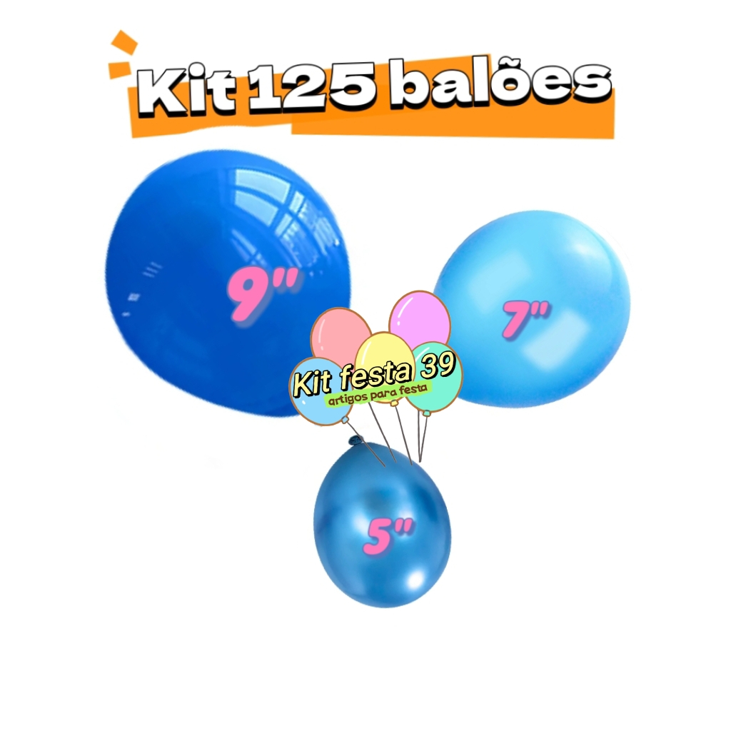 Kit 125 Balões Bexiga Liso Azul 9 Polegadas Azul Claro Cromado Azul Metalizado Decoração Festa Aniversário