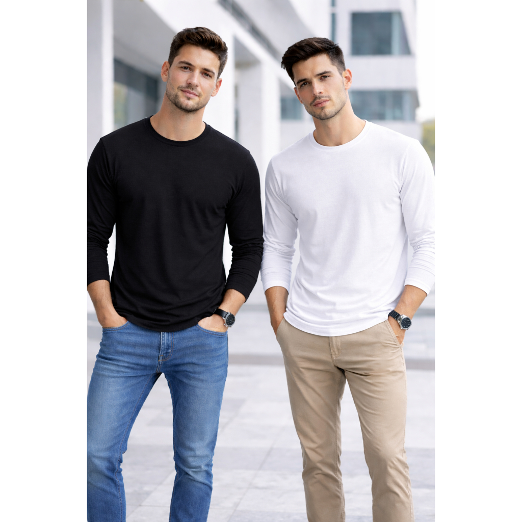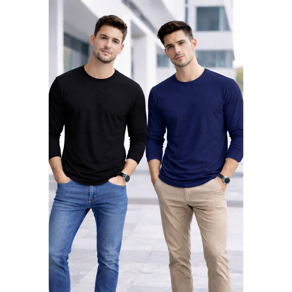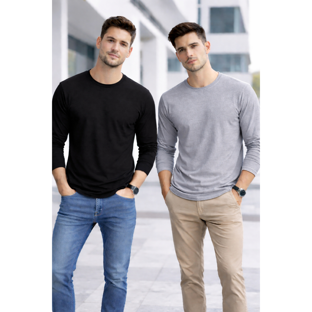 Kit 2 Manga Longa Masculina Básica 100% Algodão – Linha Premium