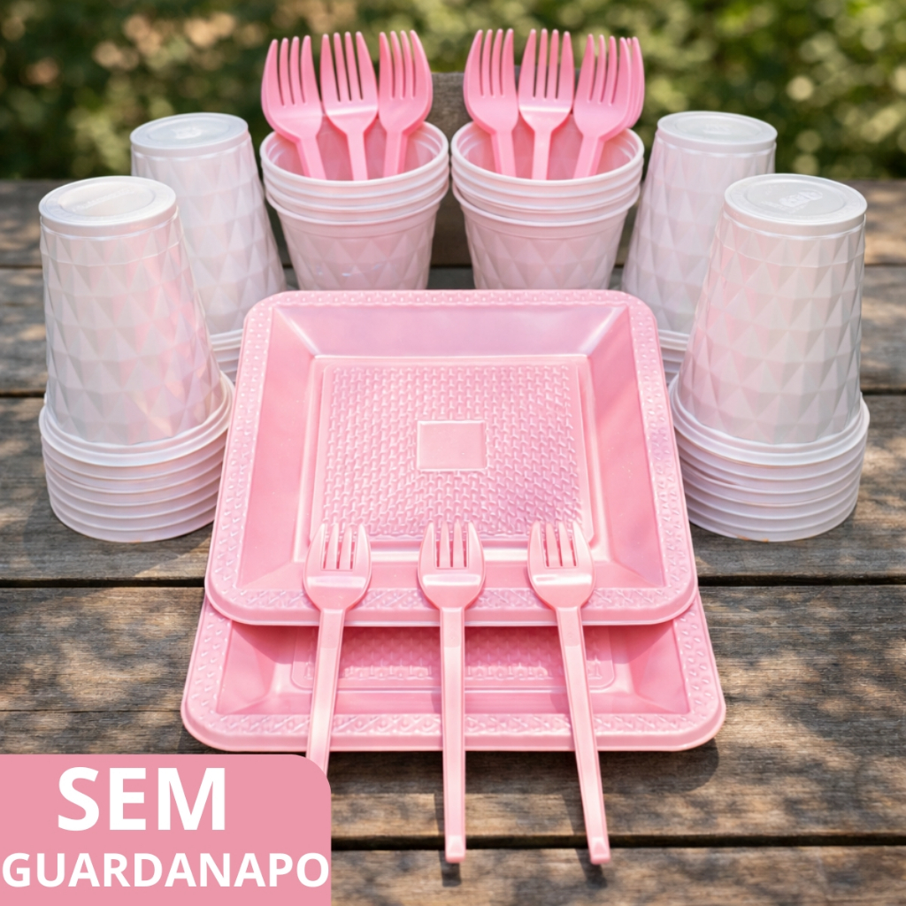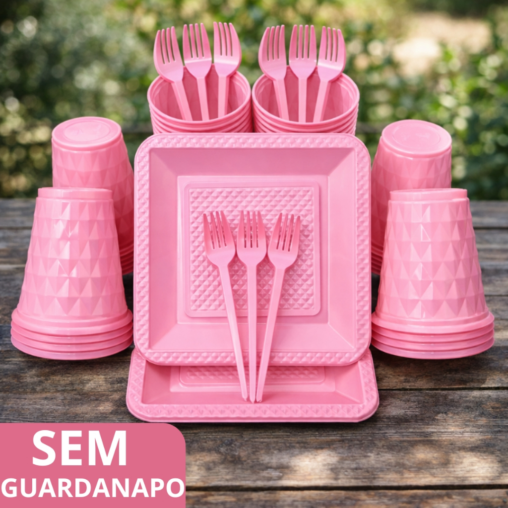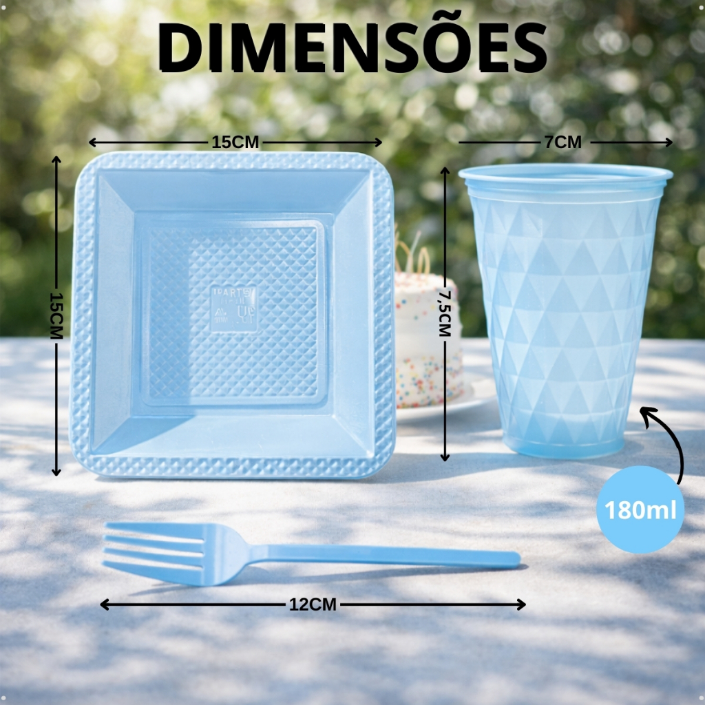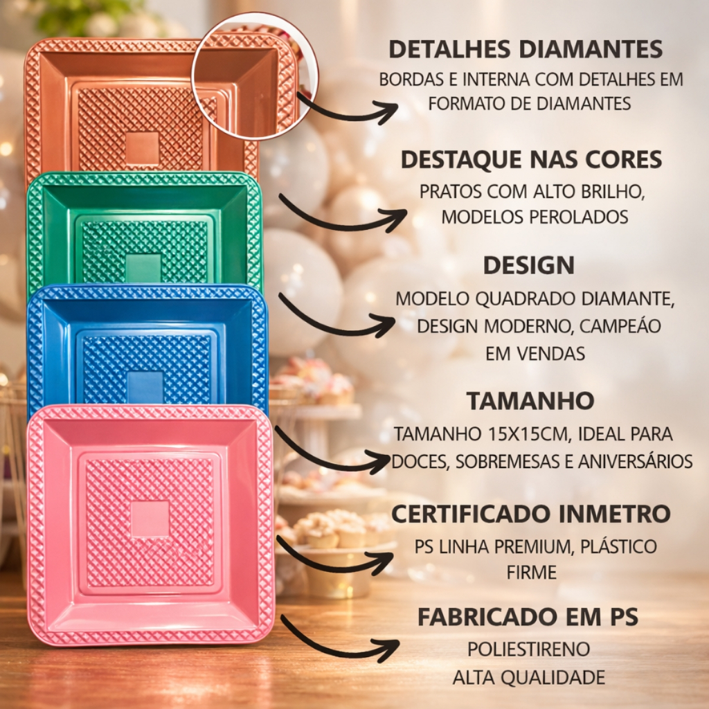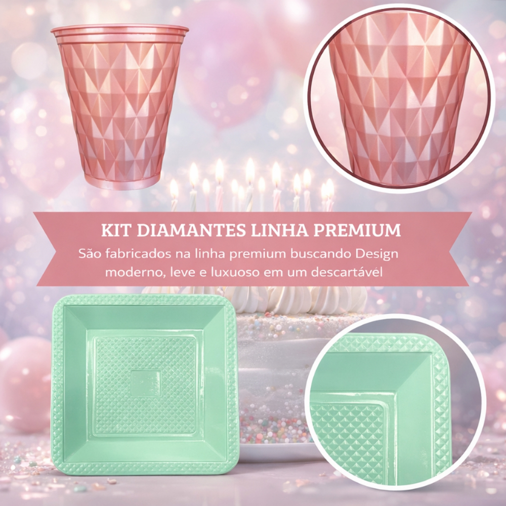 Kit 260 Itens Luxo Descartaveis Festa Aniversário Prato Quadrado Diamante Plástico Colorido Perolado Candy Pastel