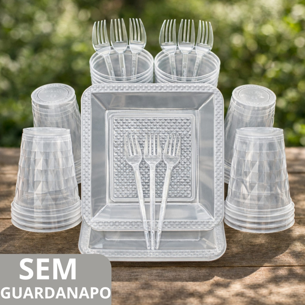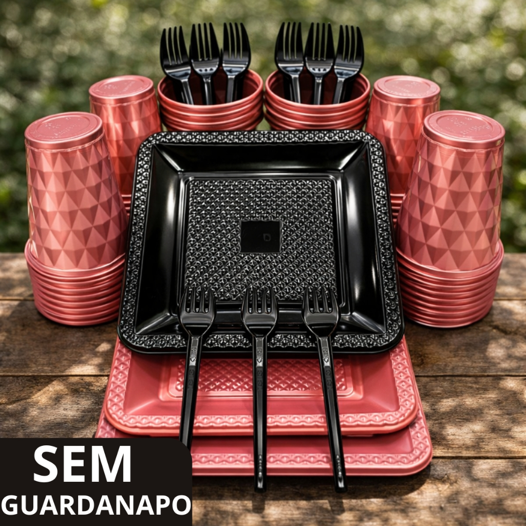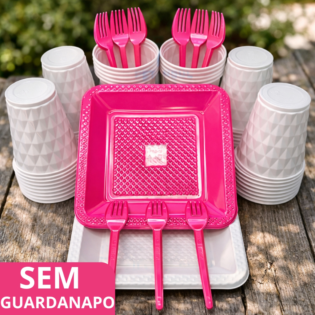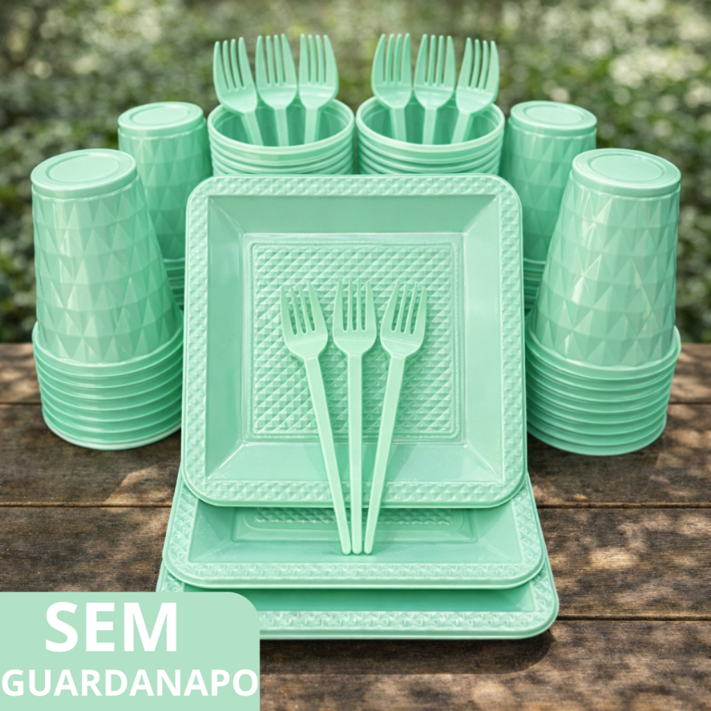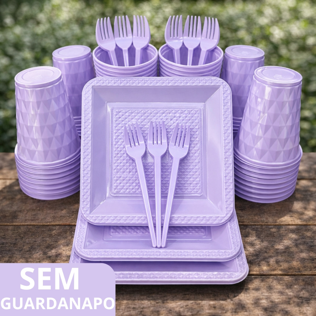 Kit 260 Itens Luxo Descartaveis Festa Aniversário Prato Quadrado Diamante Plástico Colorido Perolado Candy Pastel