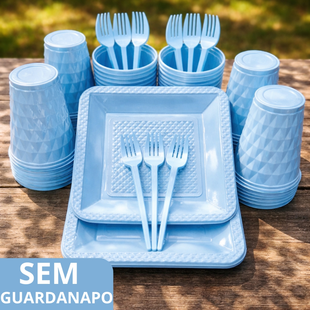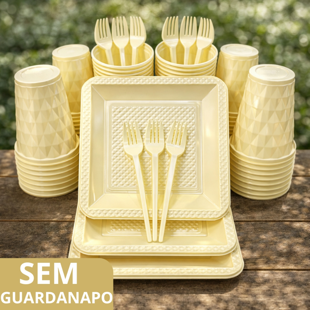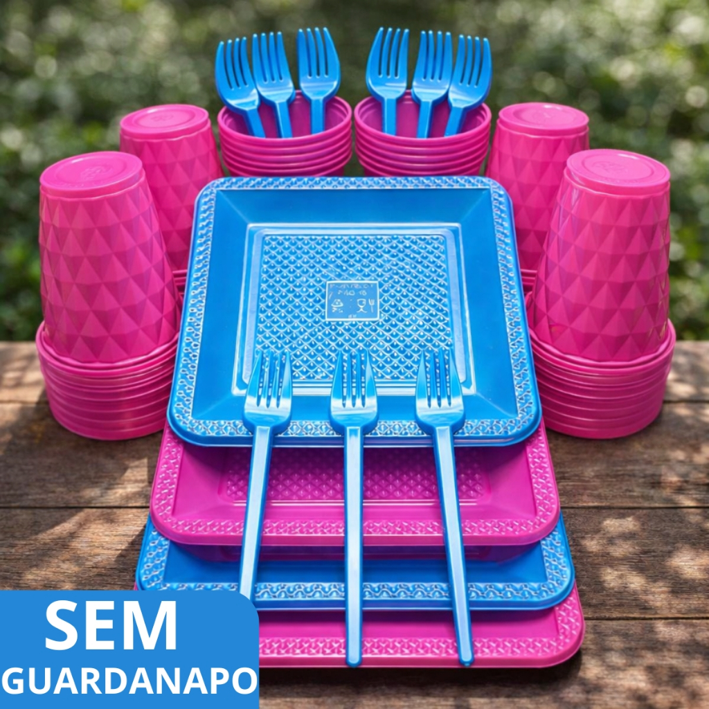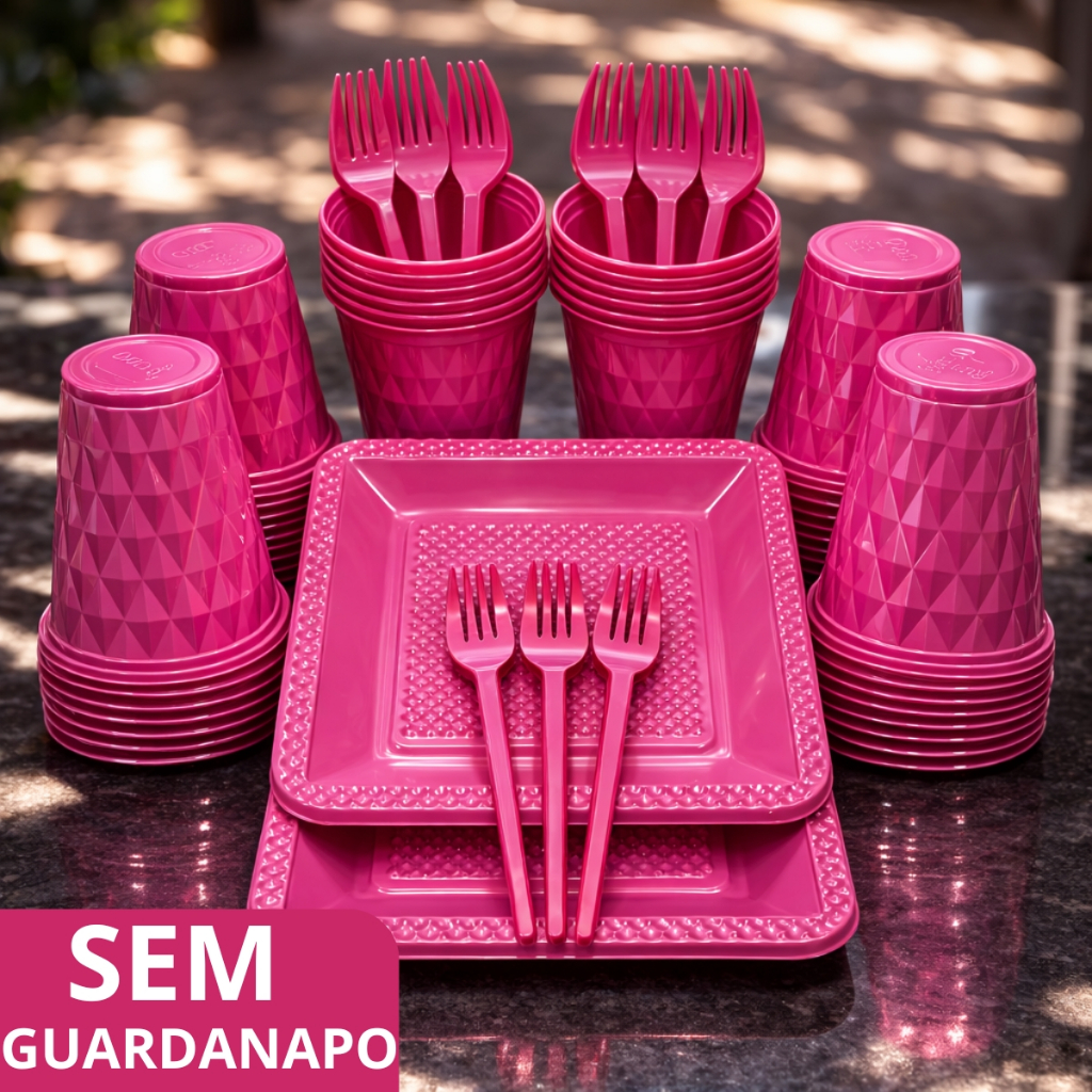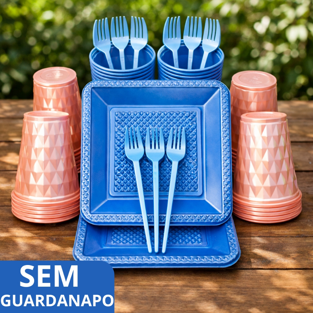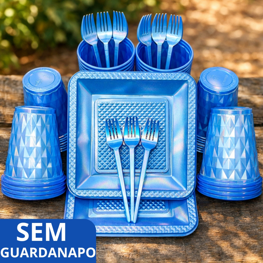 Kit 260 Itens Luxo Descartaveis Festa Aniversário Prato Quadrado Diamante Plástico Colorido Perolado Candy Pastel
