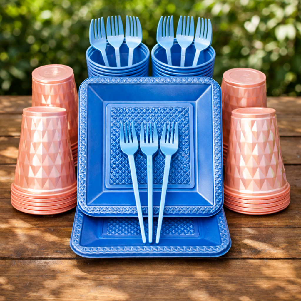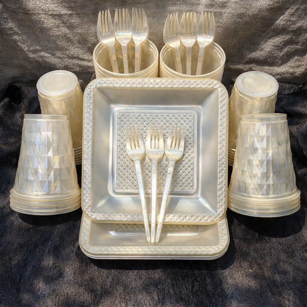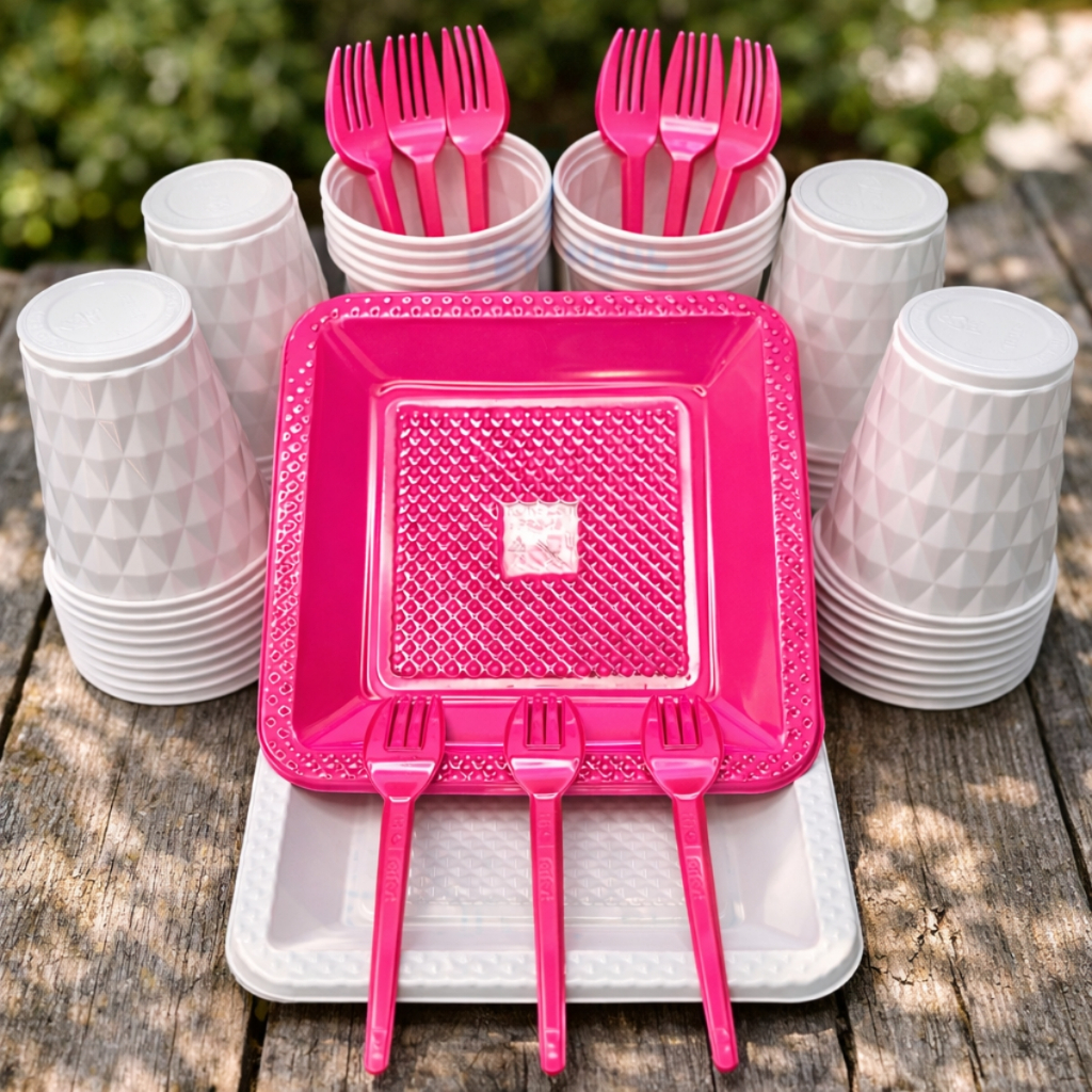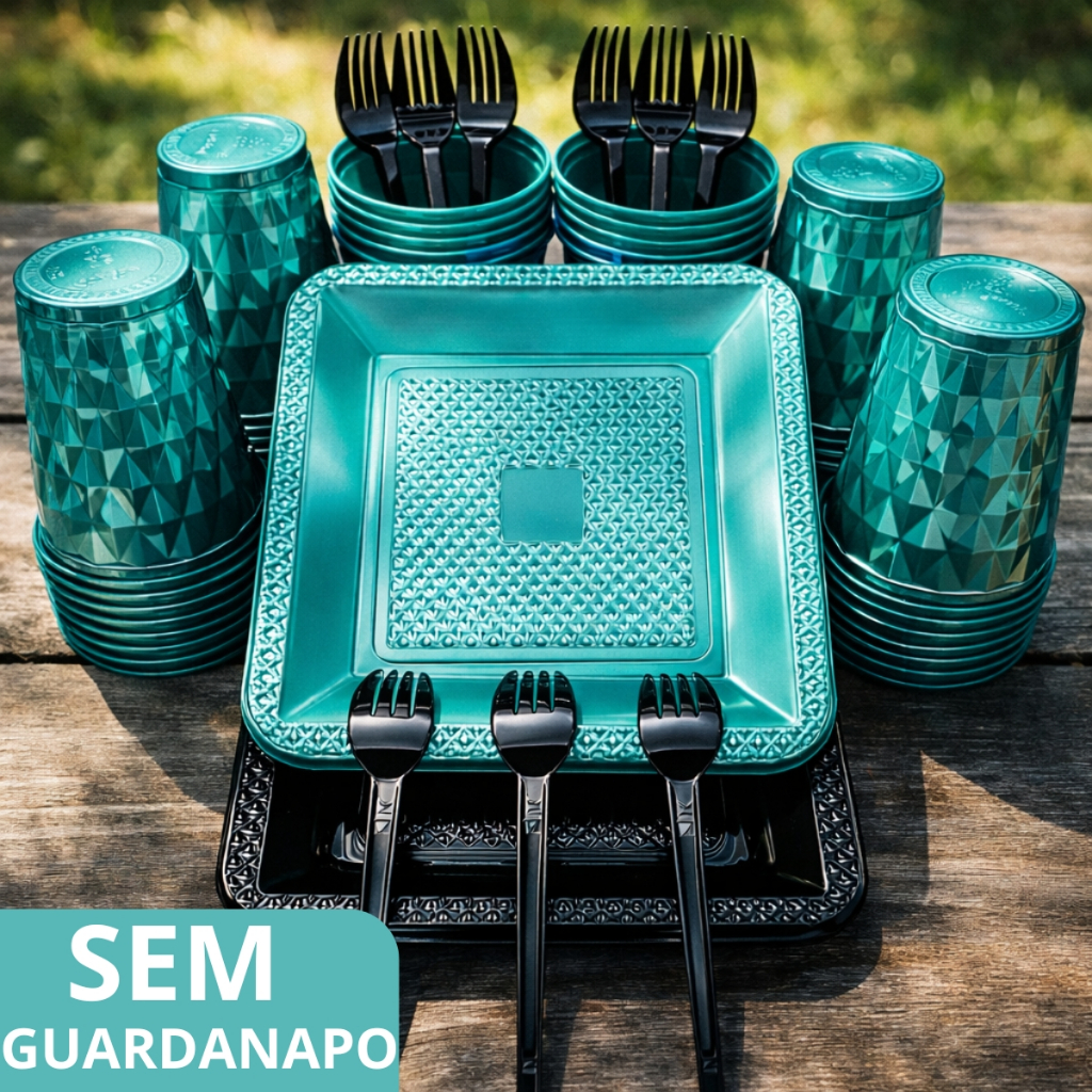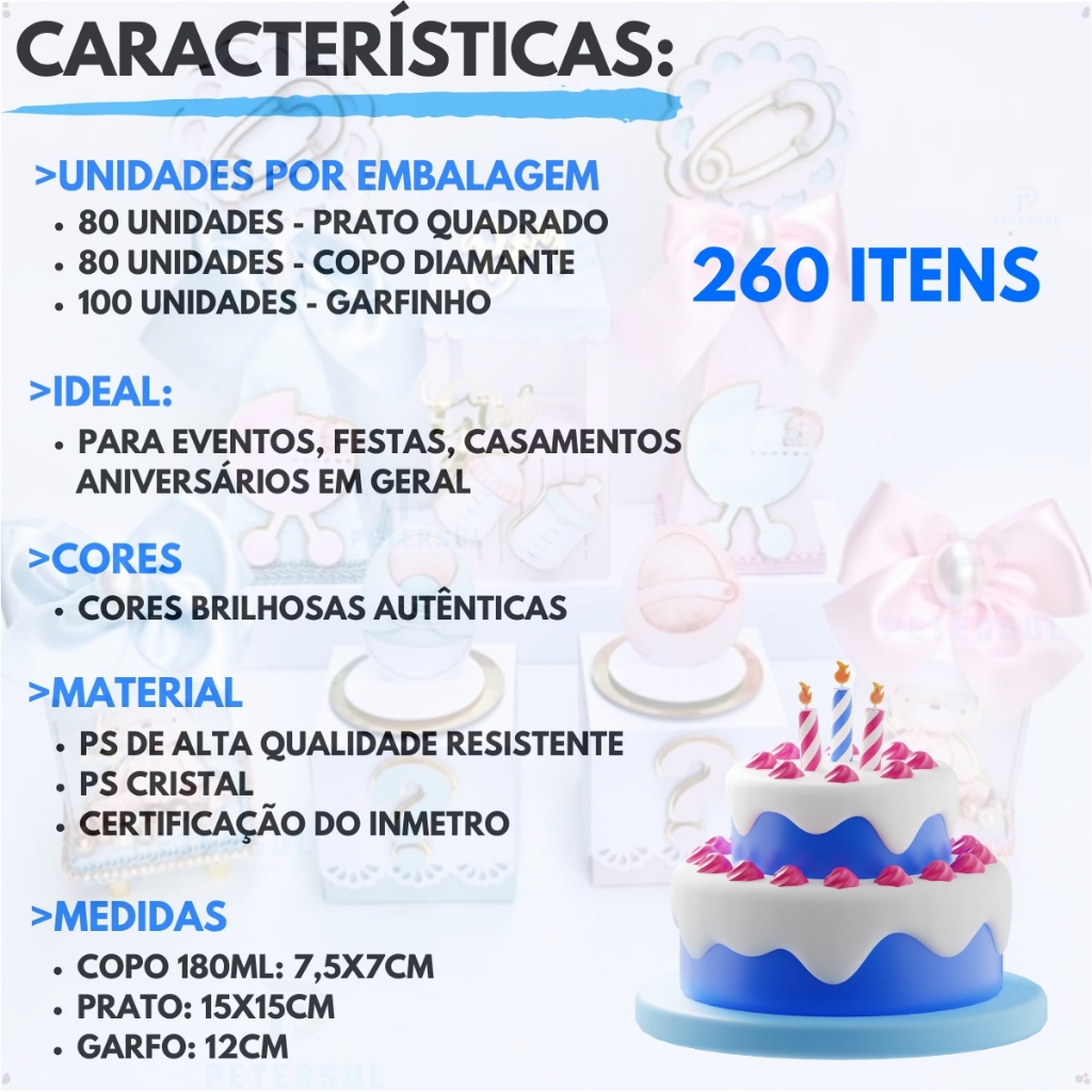 Kit 260 Itens Luxo Descartaveis Festa Aniversário Prato Quadrado Diamante Plástico Colorido Perolado Candy Pastel