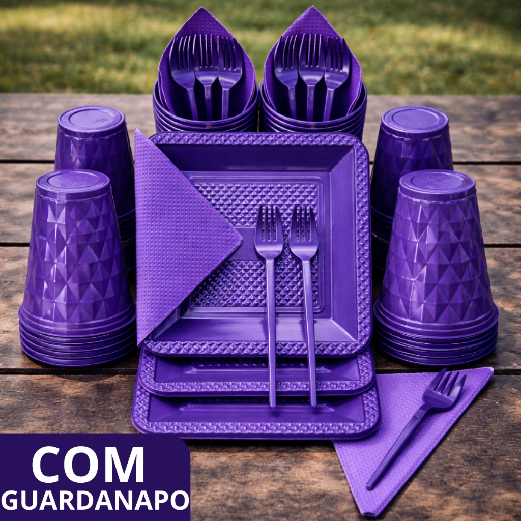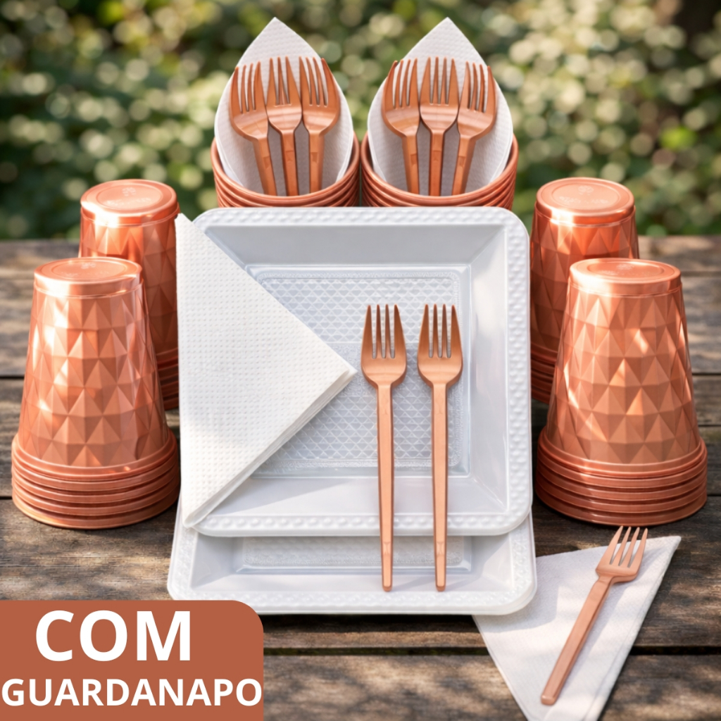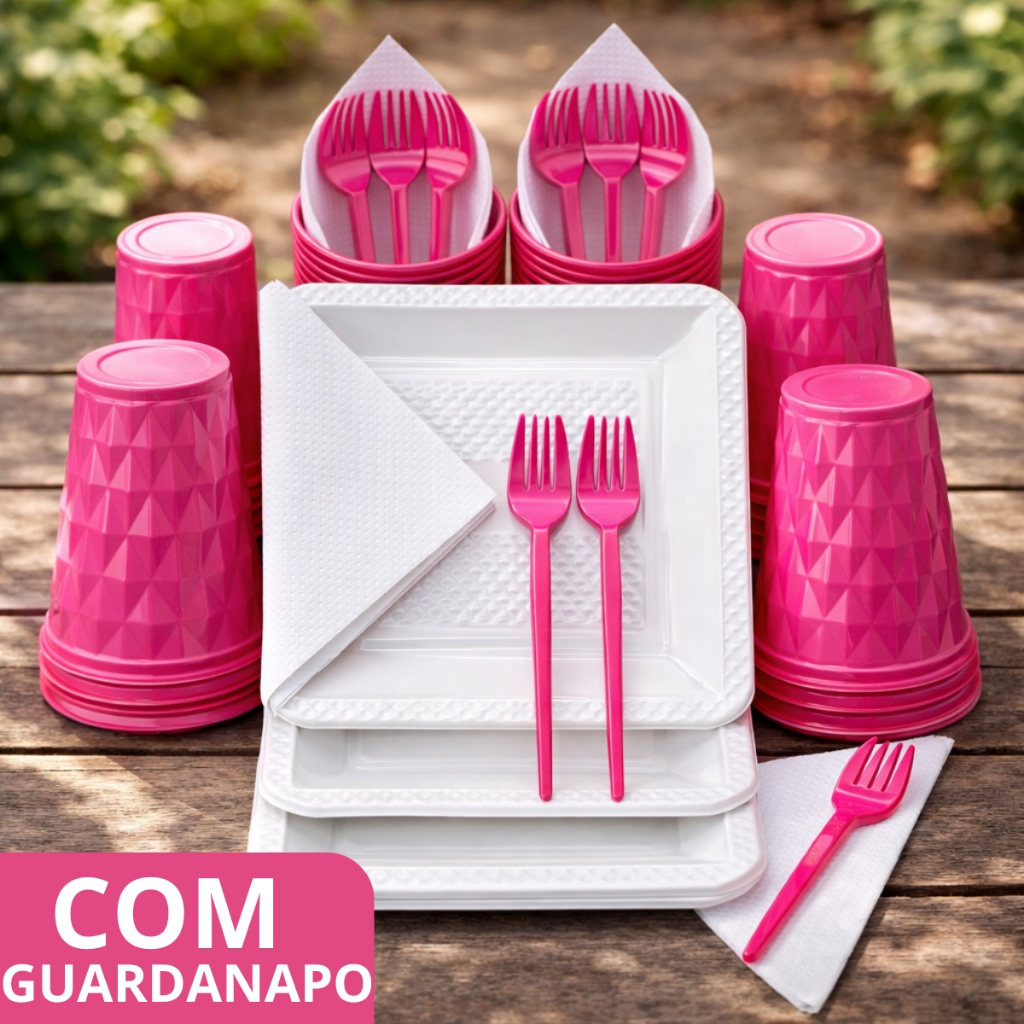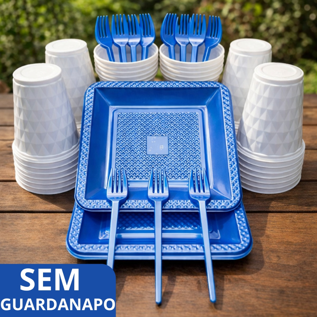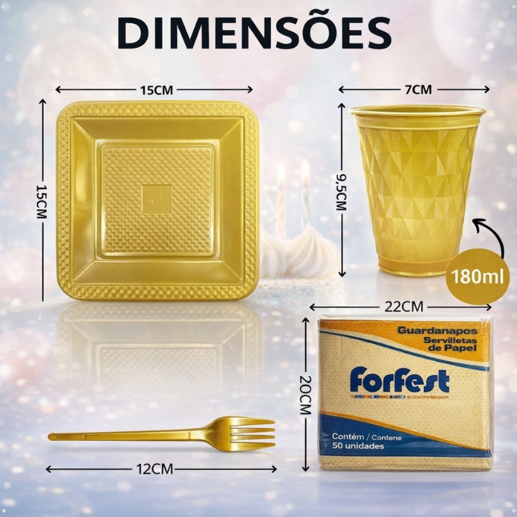 Kit 180 e 130 Itens Aniversário Descartável Diamante Quadrado Festa Pratos Copos Garfinhos Guardanapo Azul Rose Perolado