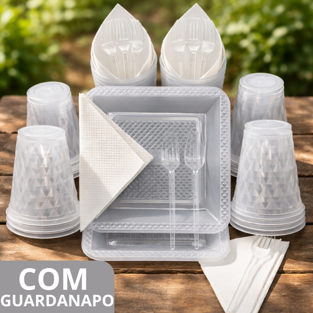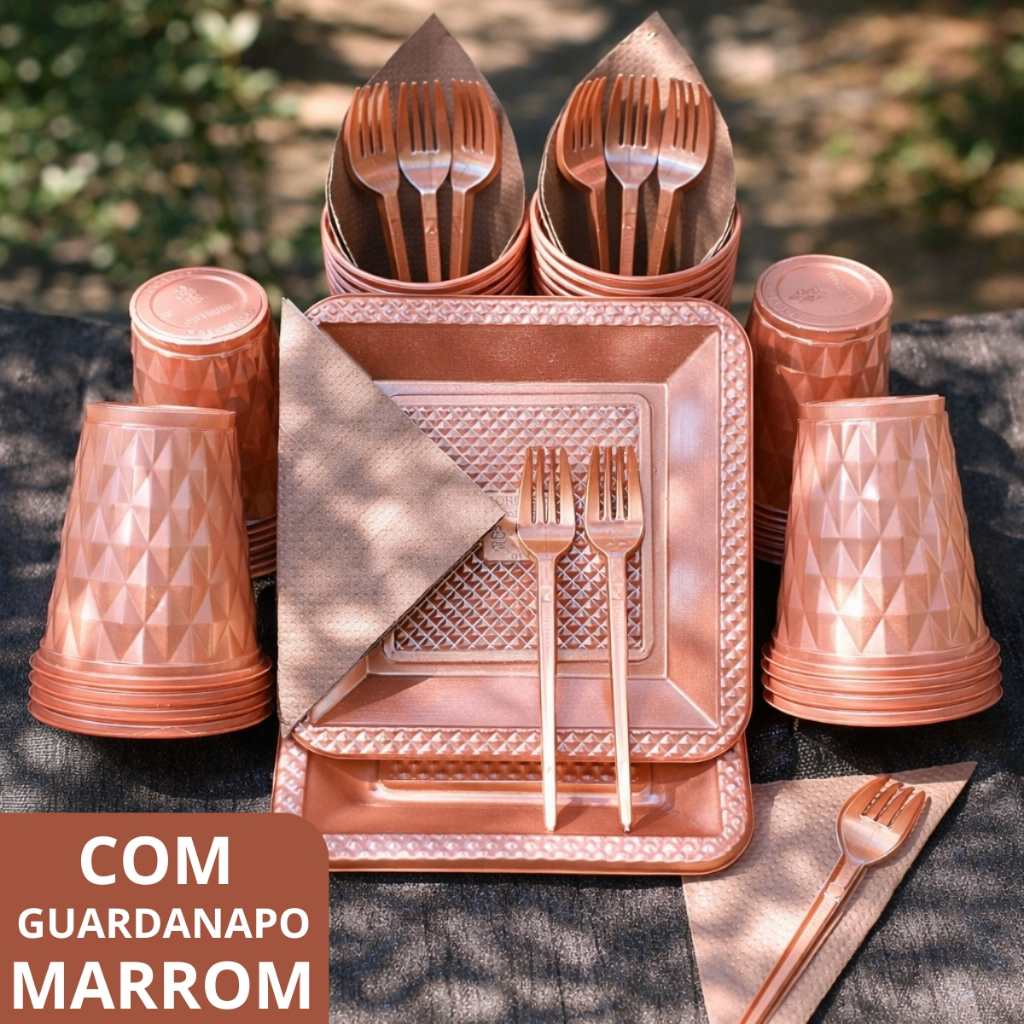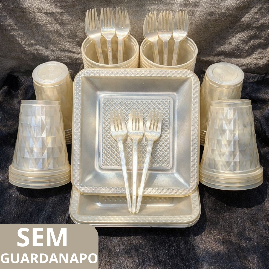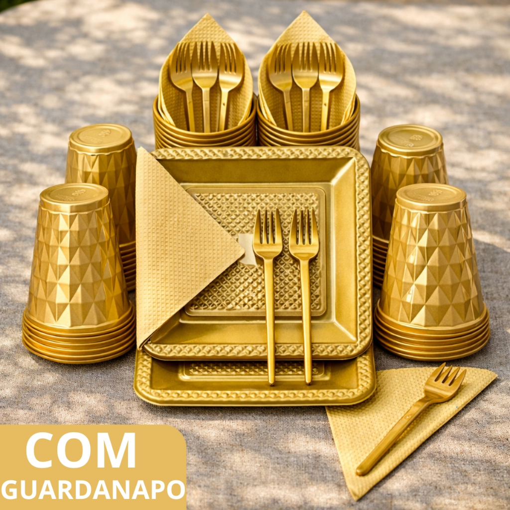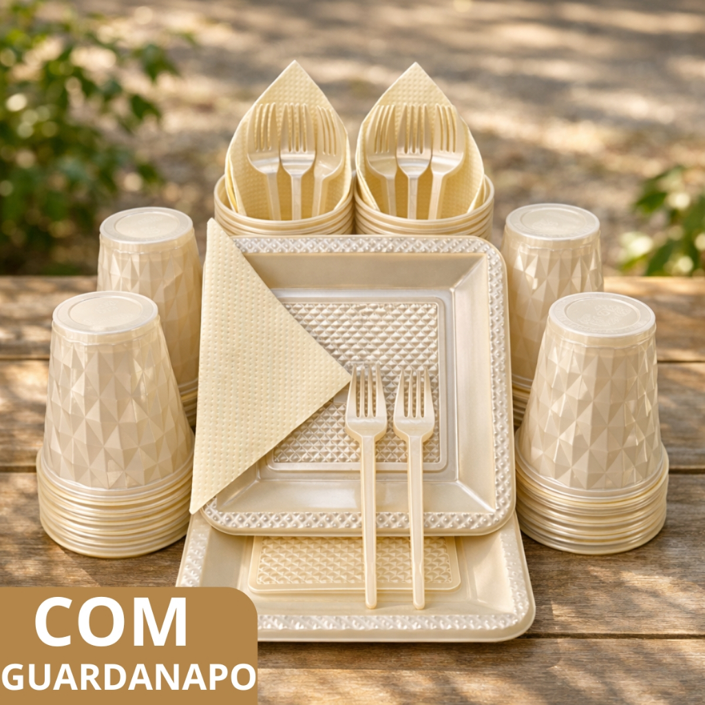 Kit 180 e 130 Itens Aniversário Descartável Diamante Quadrado Festa Pratos Copos Garfinhos Guardanapo Azul Rose Perolado
