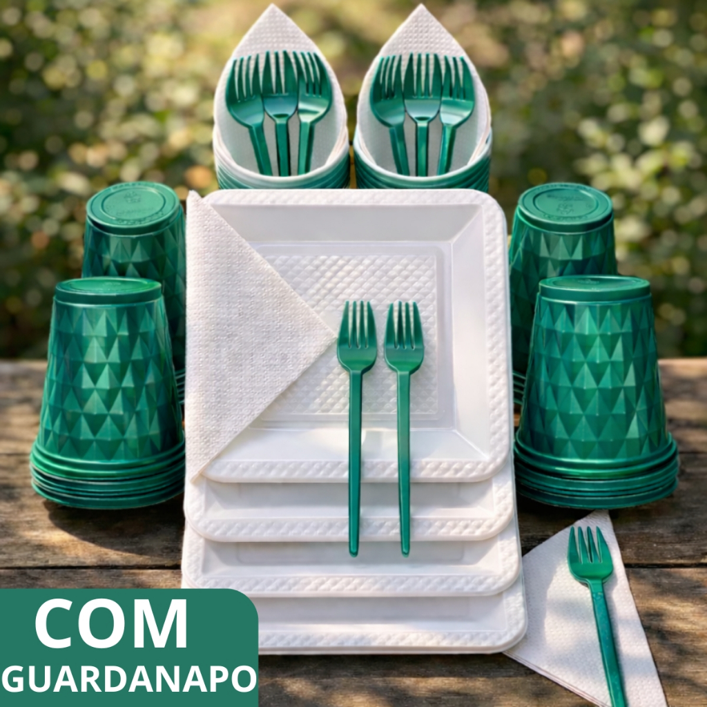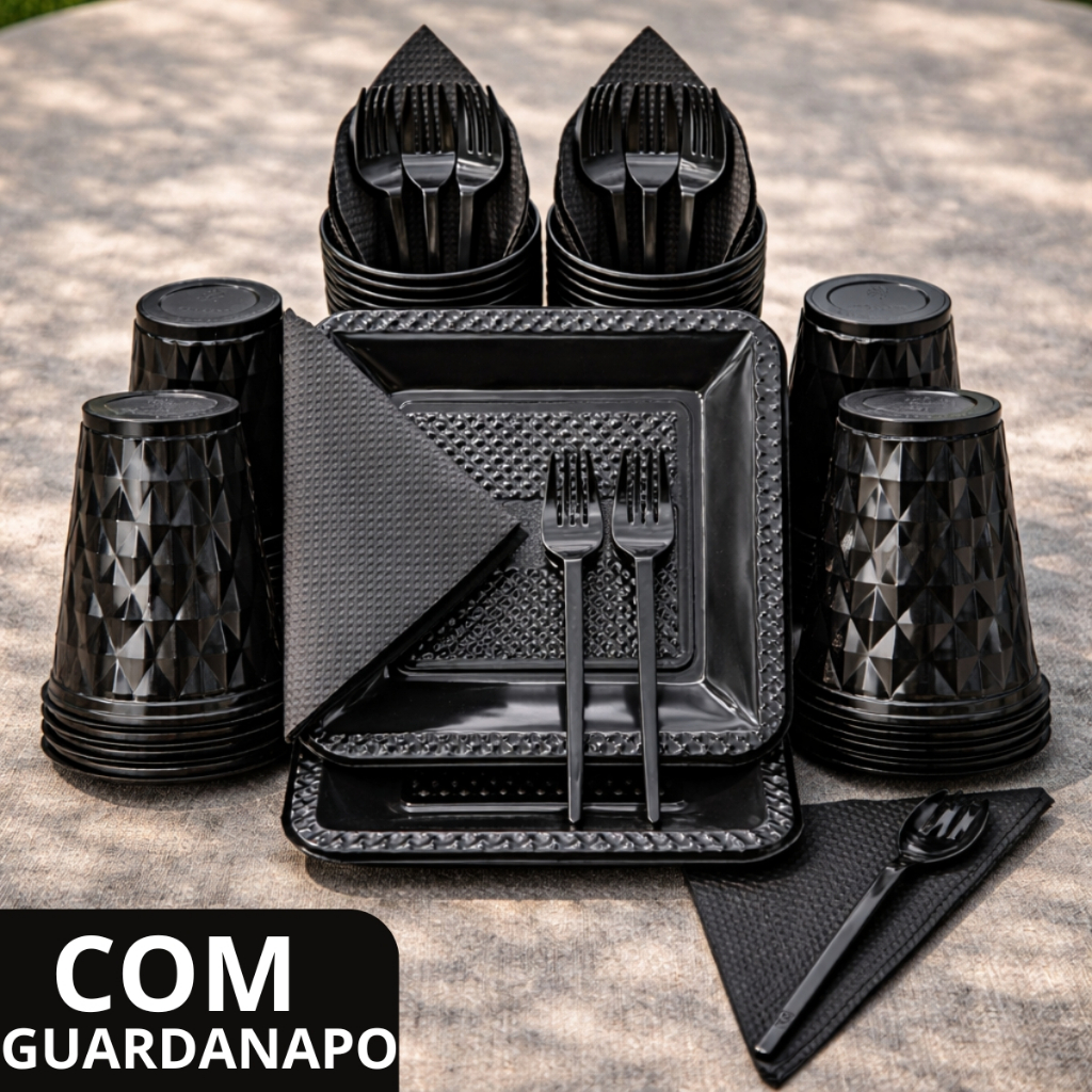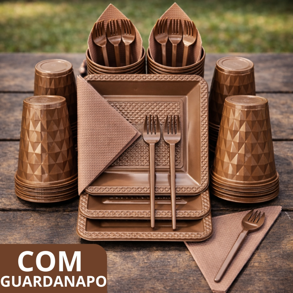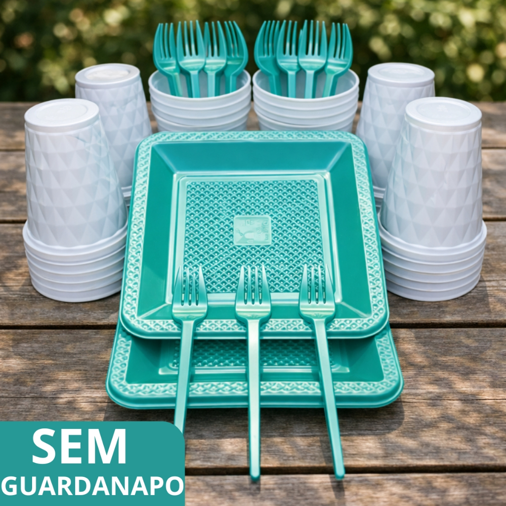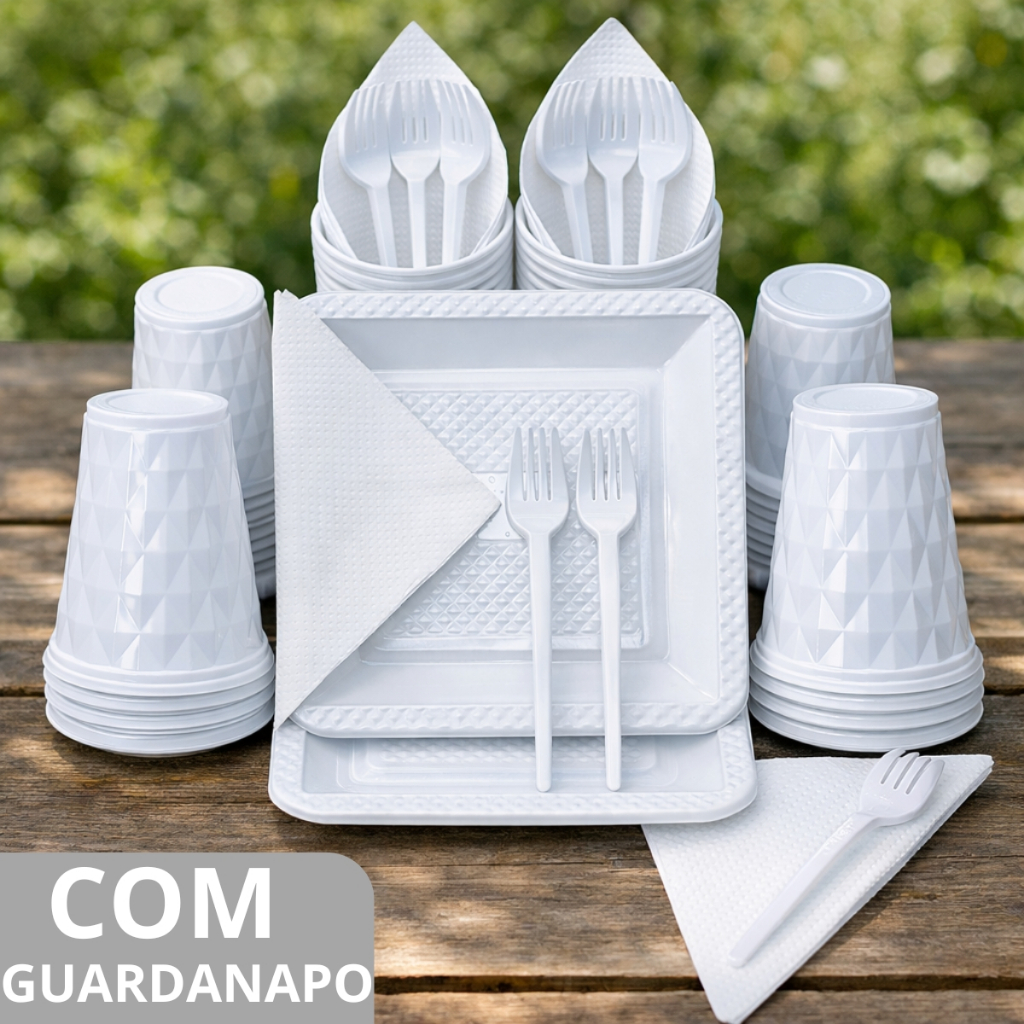 Kit 180 e 130 Itens Aniversário Descartável Diamante Quadrado Festa Pratos Copos Garfinhos Guardanapo Azul Rose Perolado
