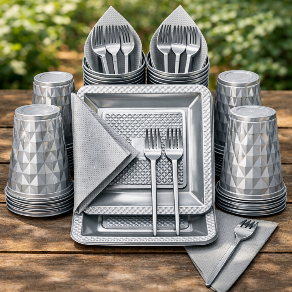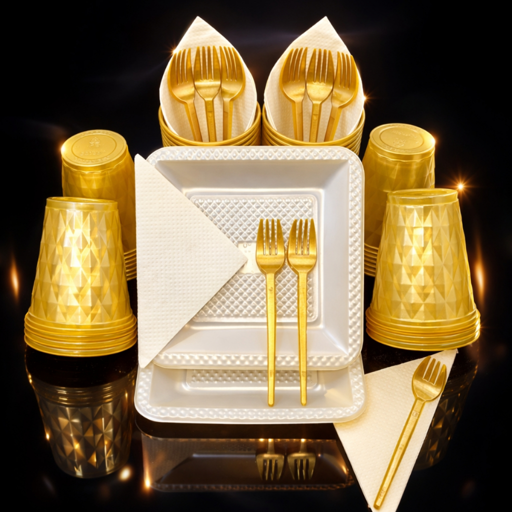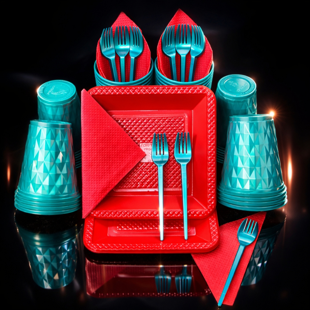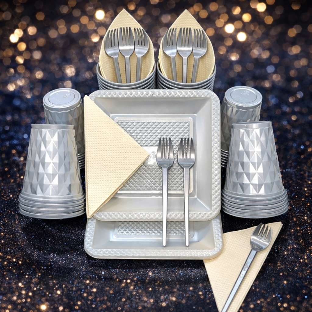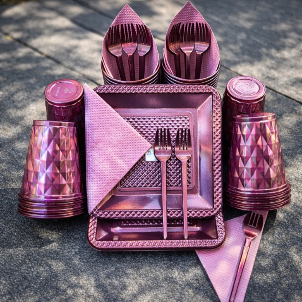 Kit 180 e 130 Itens Aniversário Descartável Diamante Quadrado Festa Pratos Copos Garfinhos Guardanapo Azul Rose Perolado