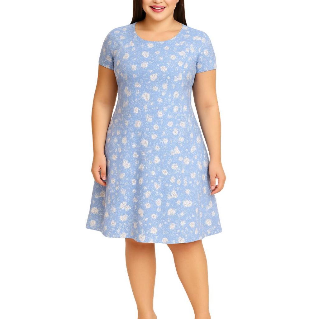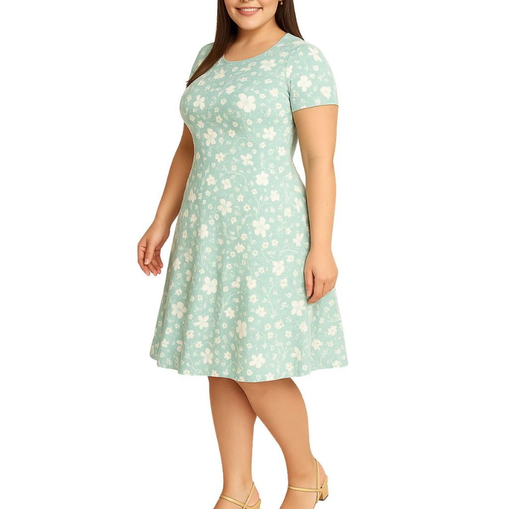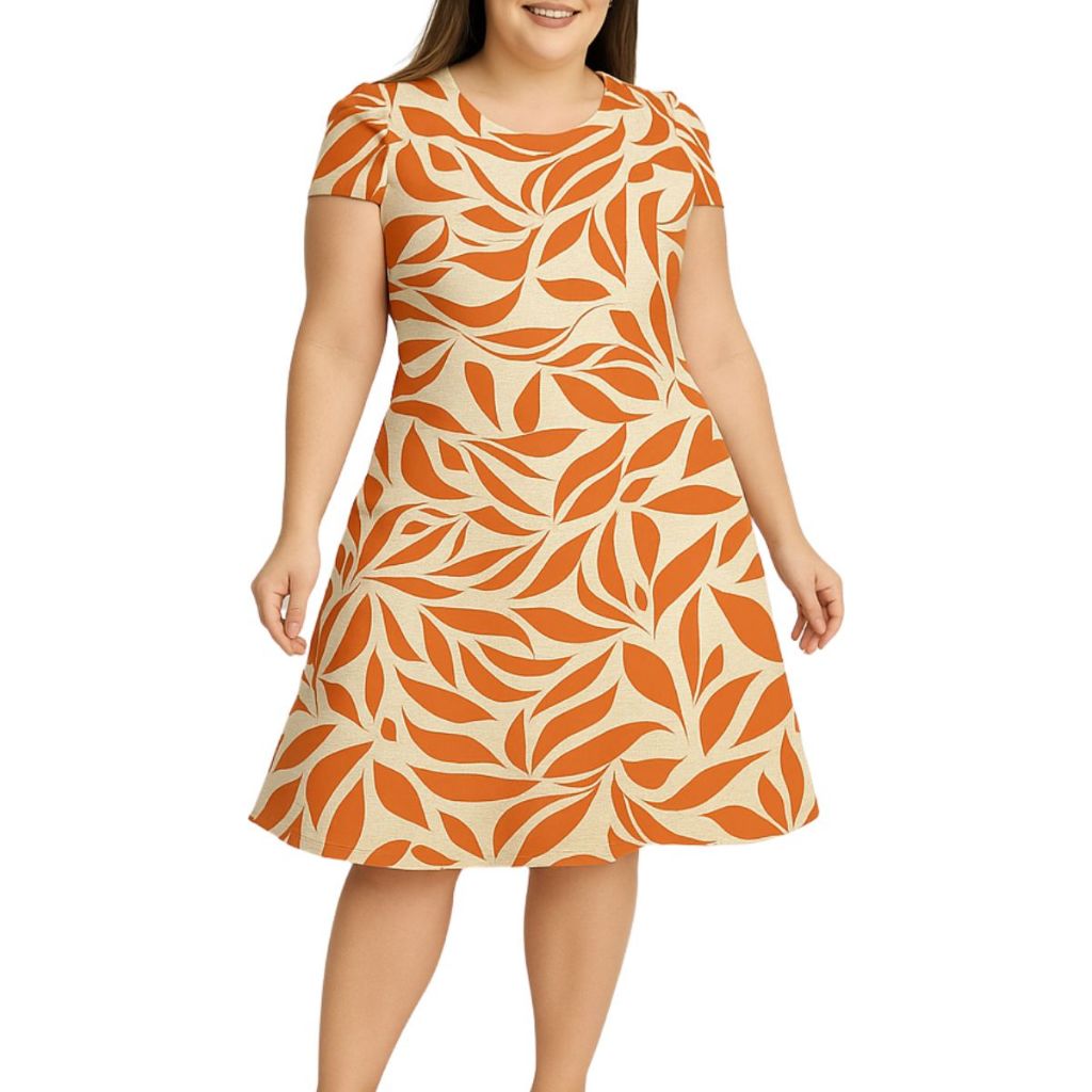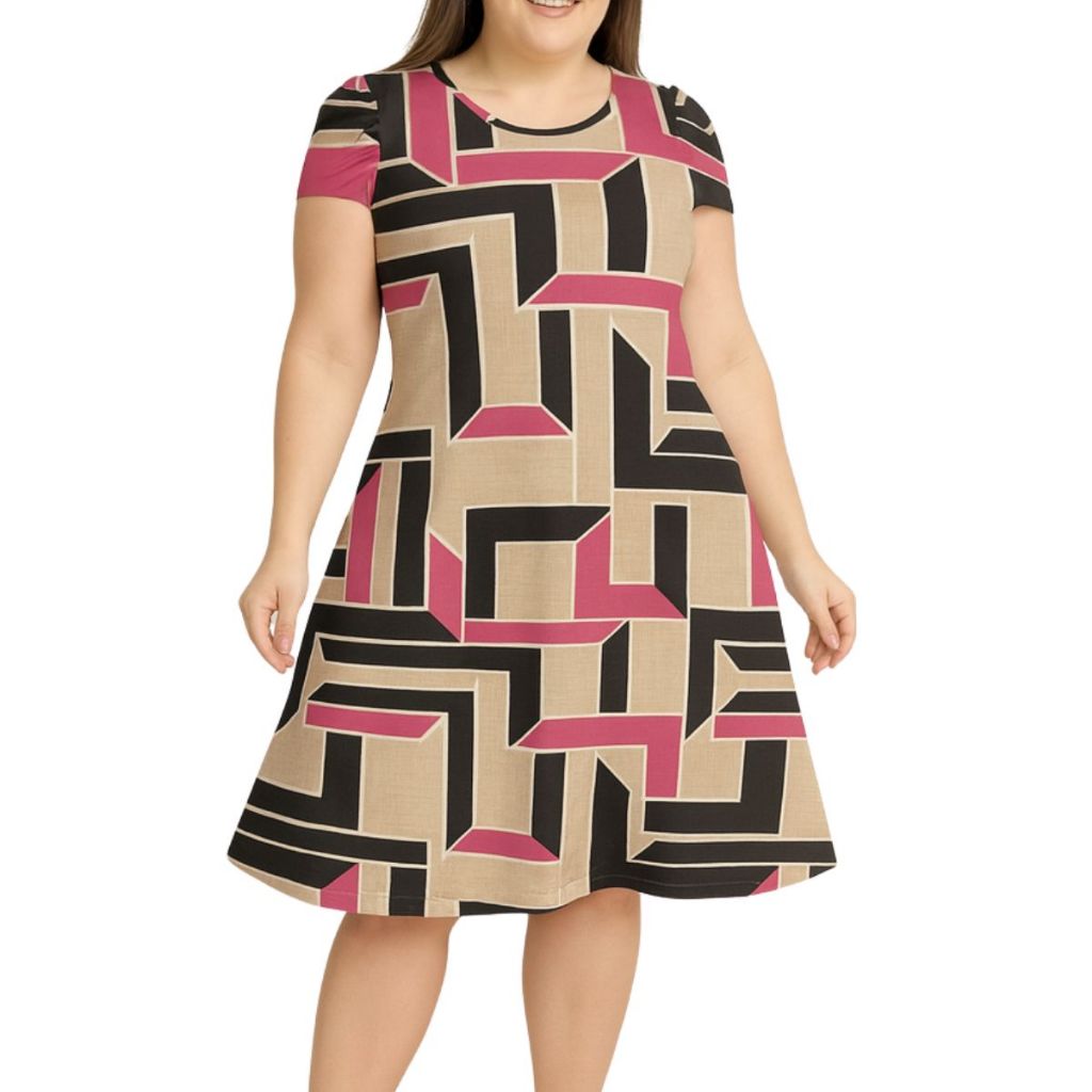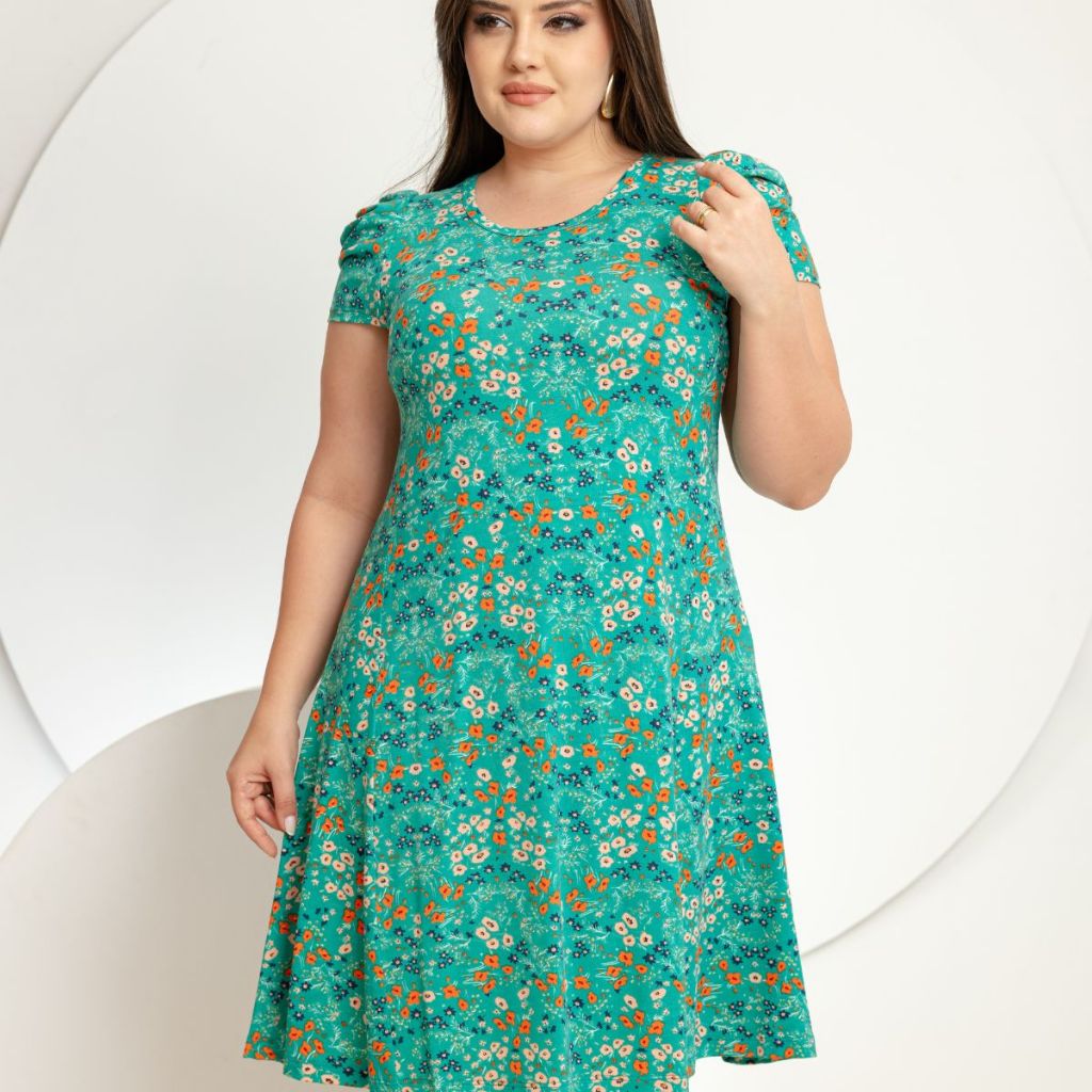 Vestido Feminino Evasê estampado Casual Confortável com Manga Curta