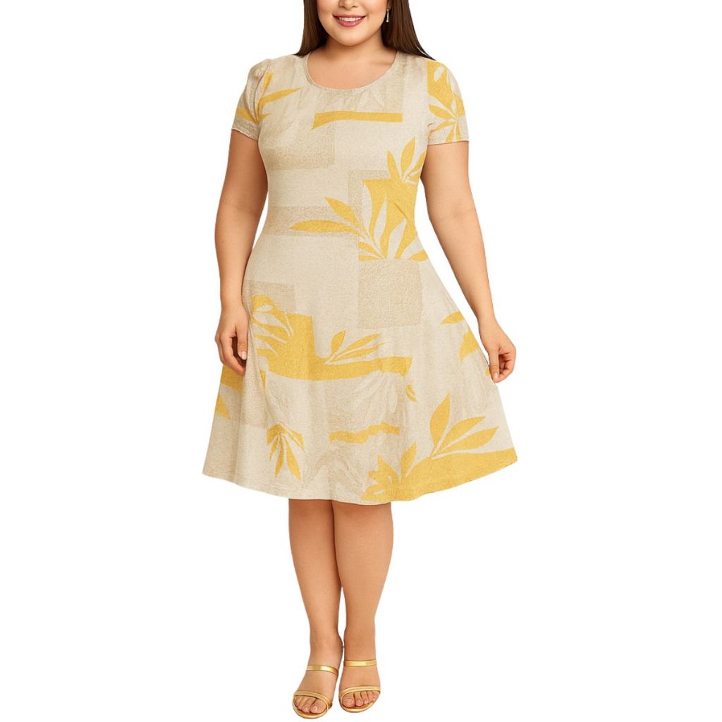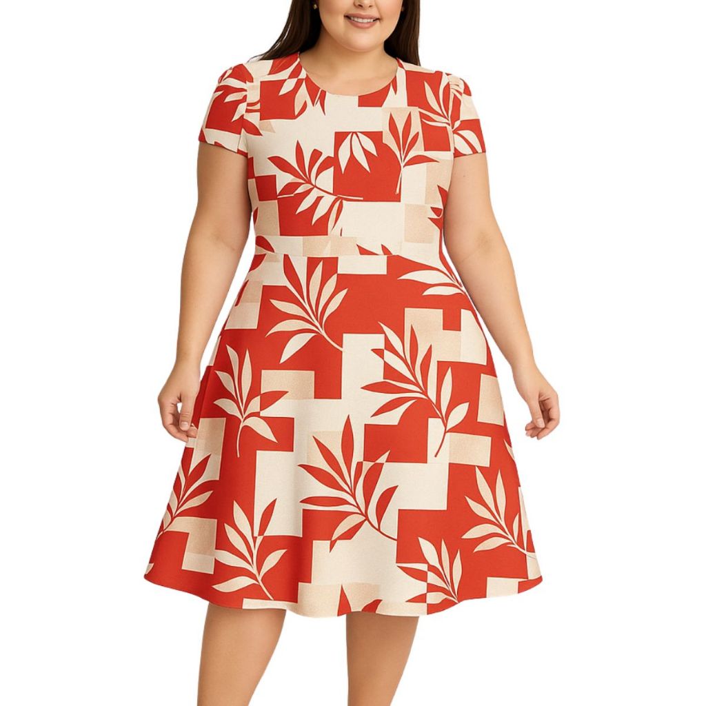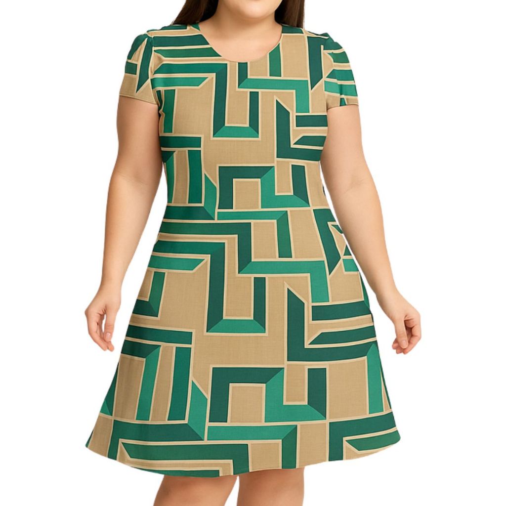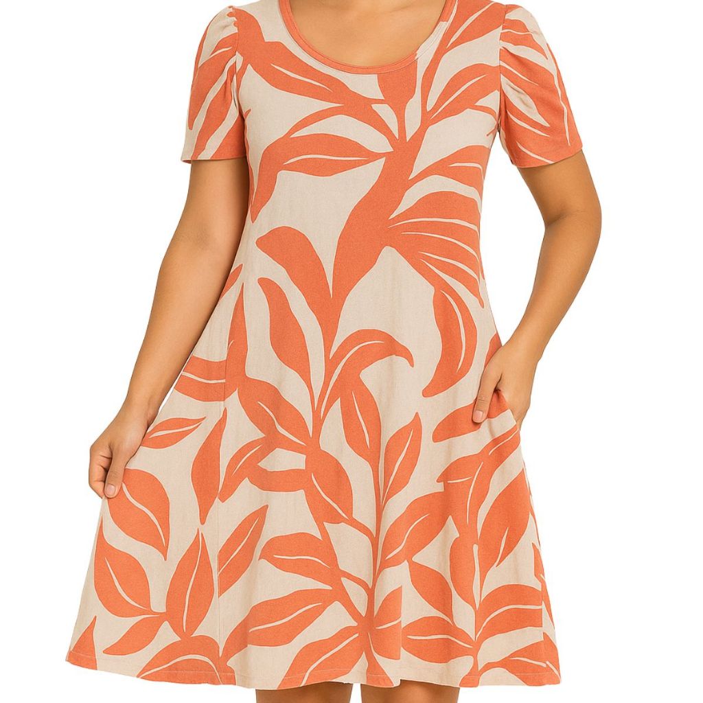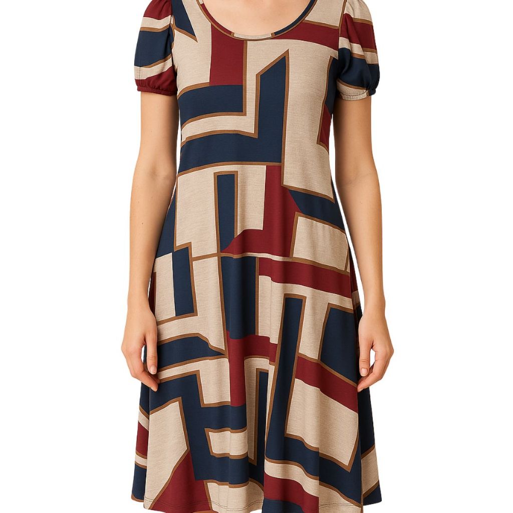 Vestido Feminino Evasê estampado Casual Confortável com Manga Curta