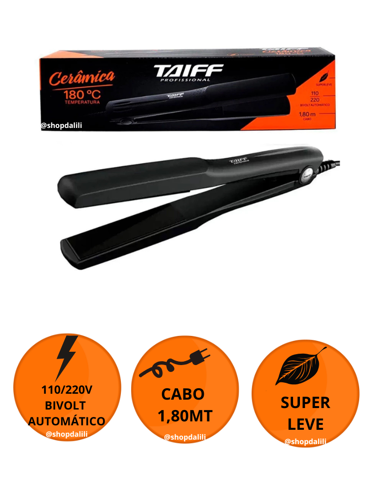 Prancha de Cabelo Chapinha Taiff Cerâmica Preta 110V/220V Bivolt 180CºProfissional Original Garantia