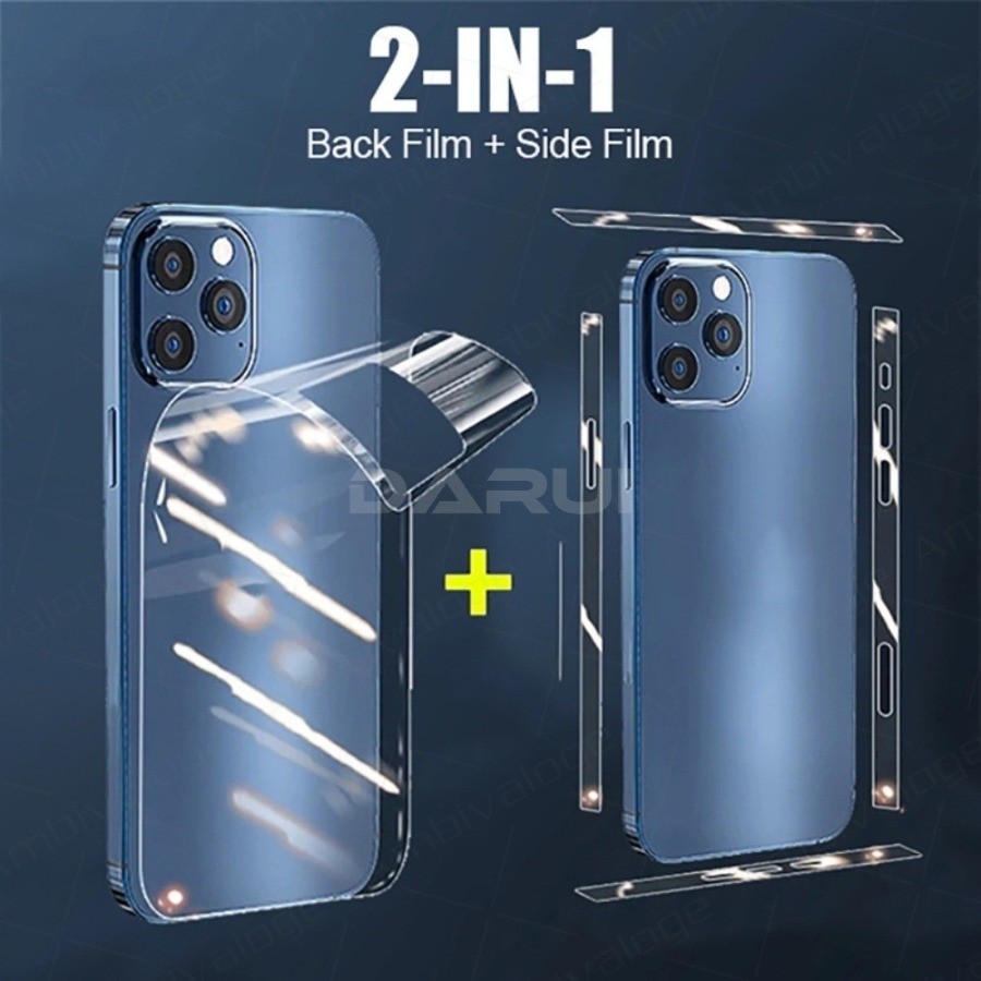 Filme de proteção para trás + Filme de proteção para o lado Para iPhone 12 13 14 15 16 17 Pro Max