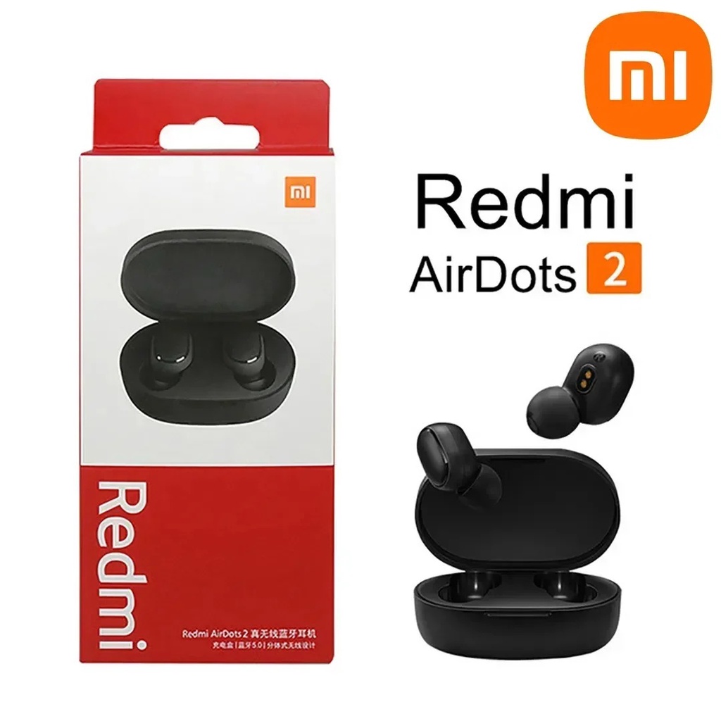 Xiaomi-Mijia Redmi Airdots 2 Fones de ouvido Bluetooth, fones de ouvido sem fio Mi True, controle com microfone, TWS