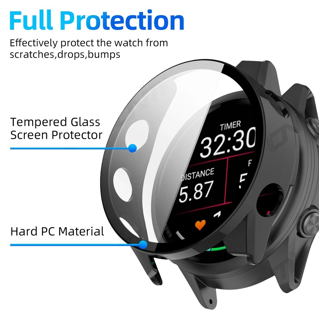 Capa para garmin forerunner 970 570 42/47mm Com protetor de tela vidro temperado e acessórios de proteção para pc rígido