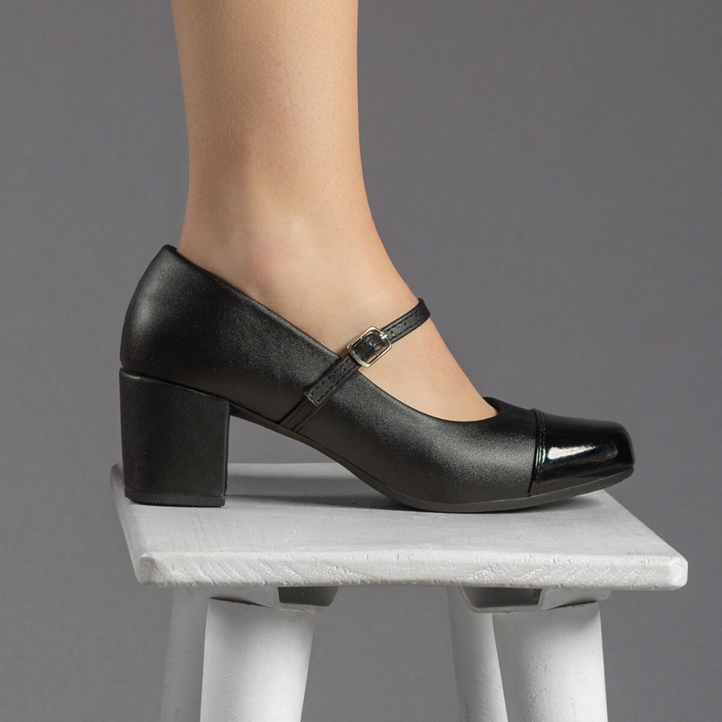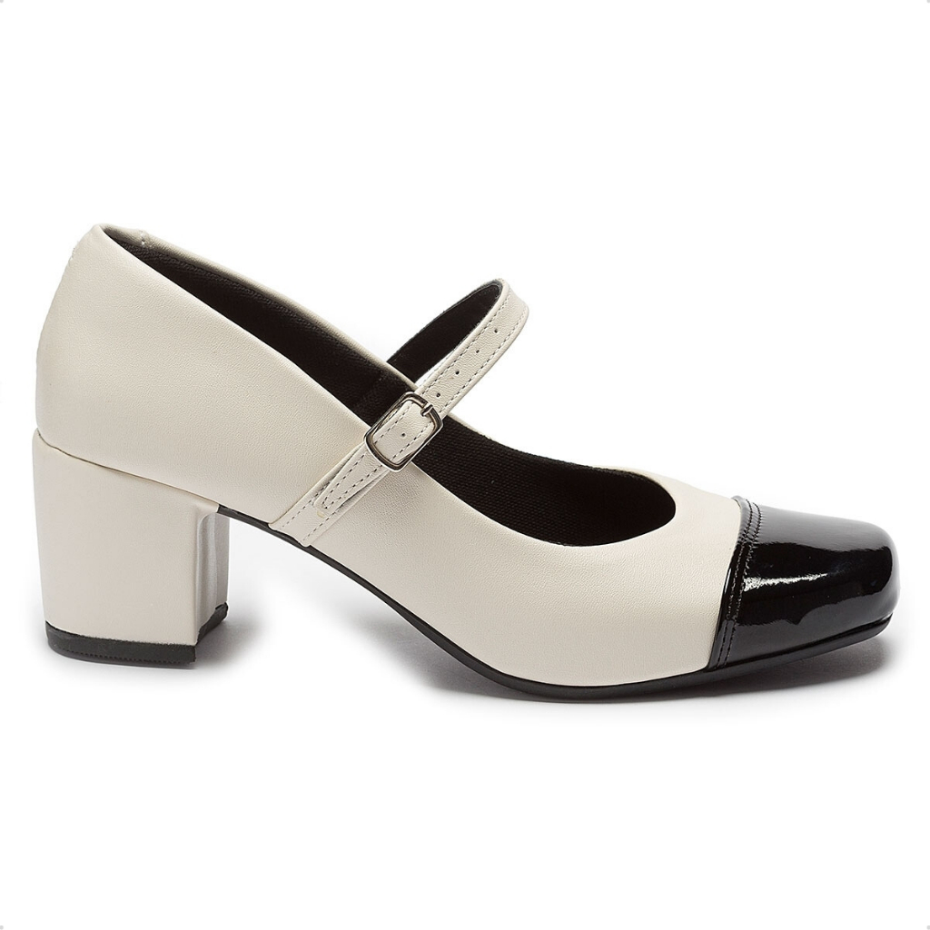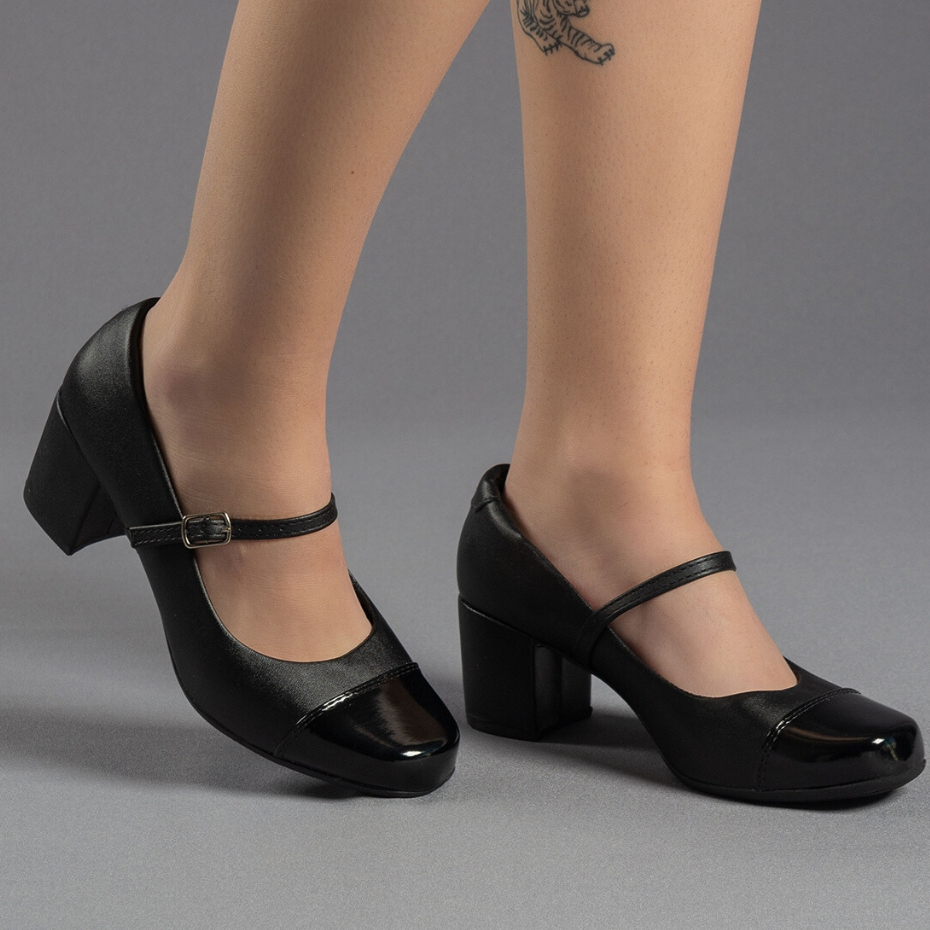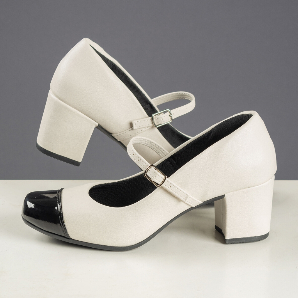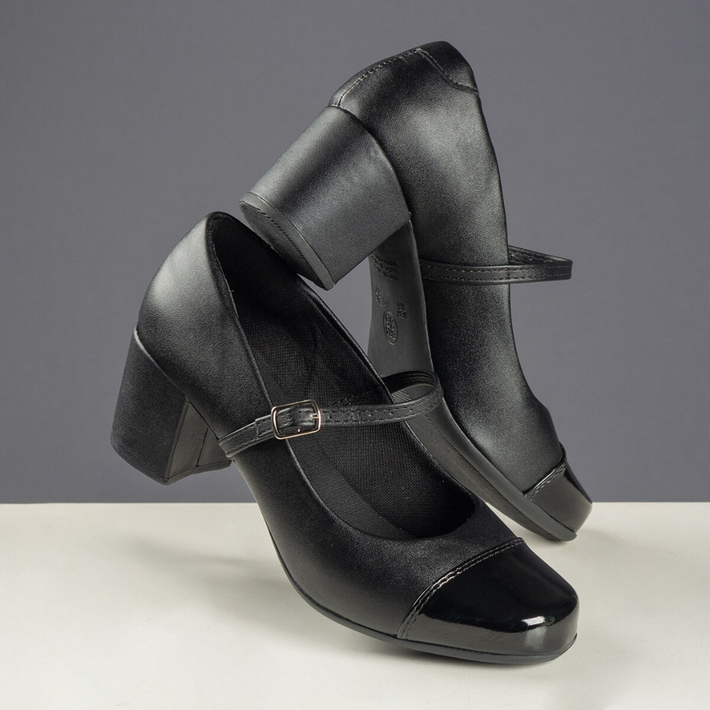 Scarpin Feminino Sapato Boneca Retrô Salto Bloco Grosso Bico Quadrado Confortável Promoção