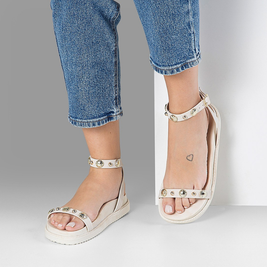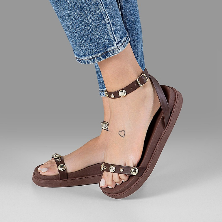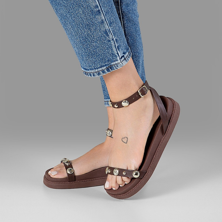 Sandalia Papete Feminina Flat Flatform Tacha Enfeite Aplique Metal Tendencia Confort