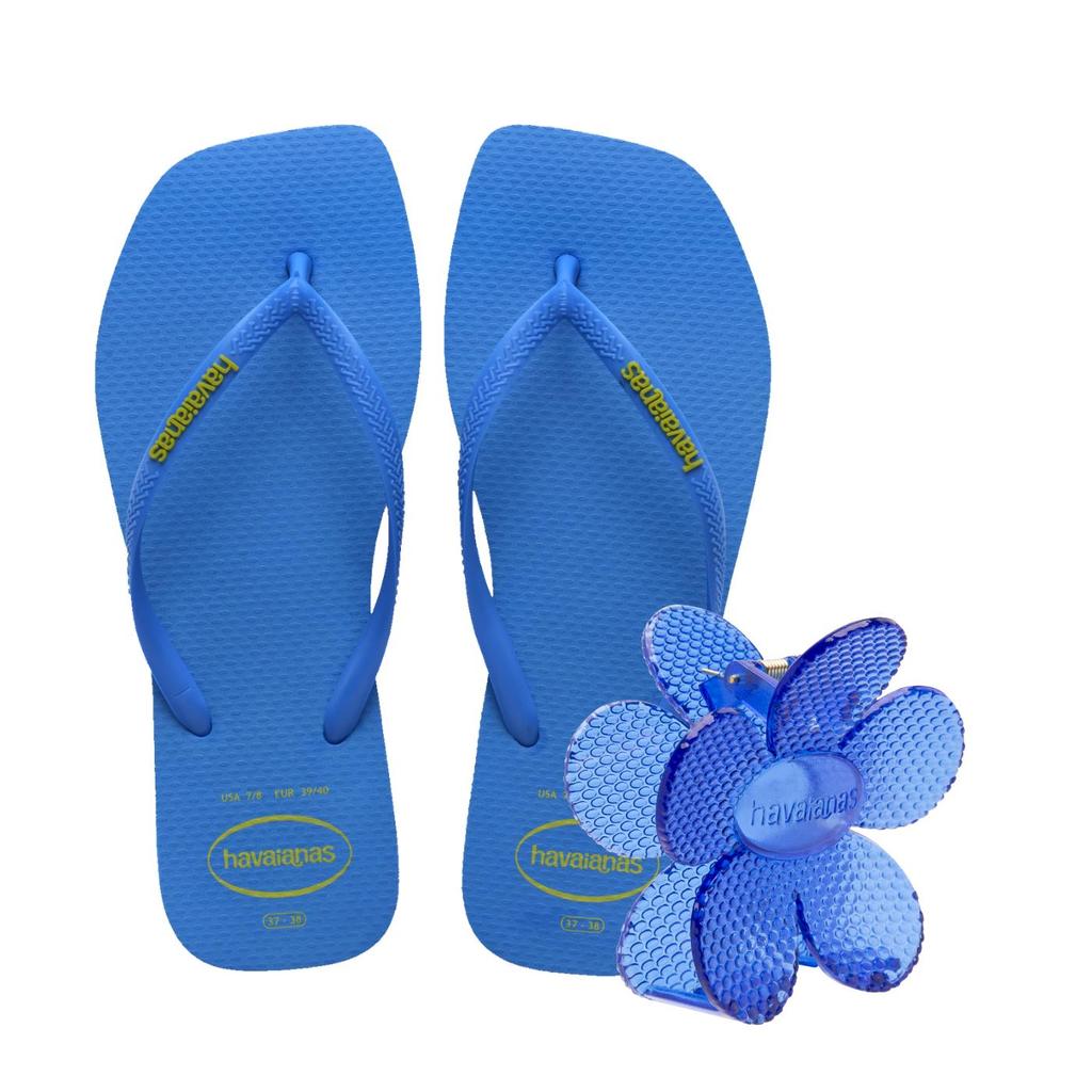 Kit Havaianas - Chinelo Havaianas Slim Square Logo Pop Up + Presilha de Cabelo Havaianas