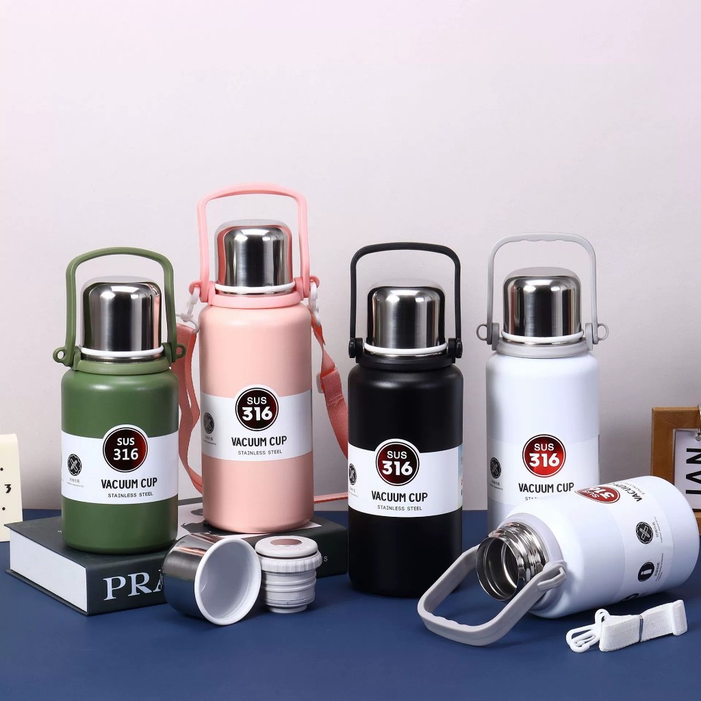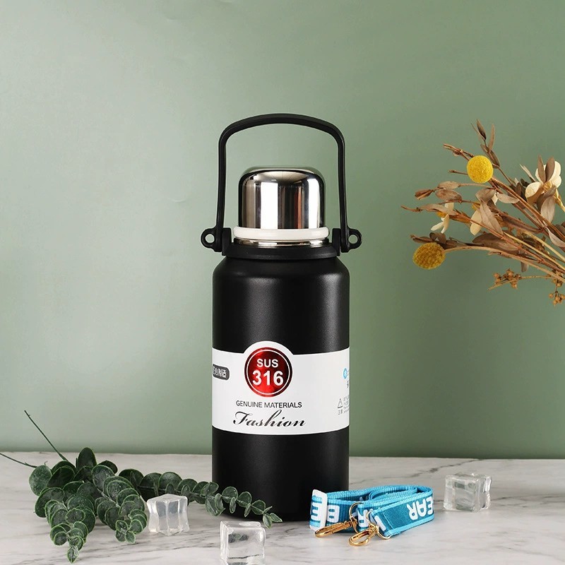Garrafa Térmica 1300ml Com Alça Aço Inoxidável Isolamento Com Canudo Academia Trabalho Caminhada