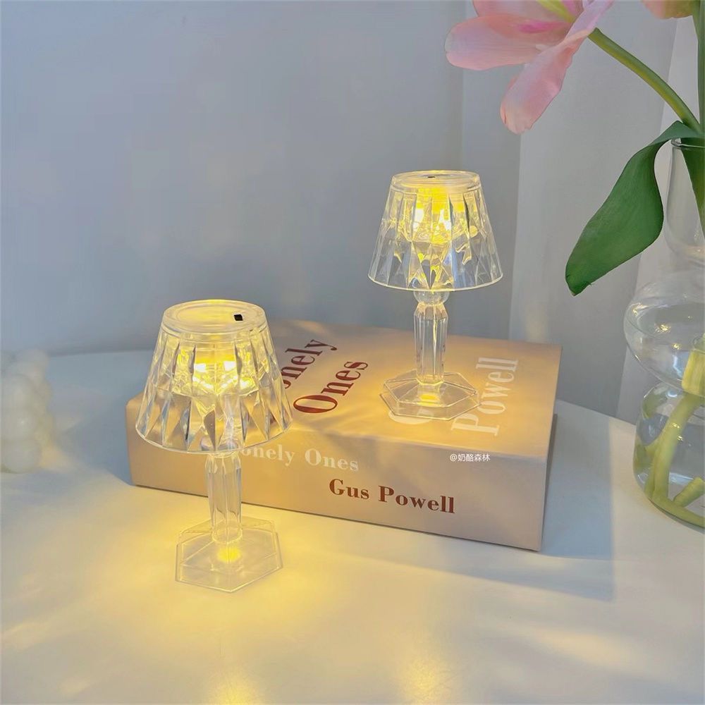 Kit 2 Mini Abajur Cristal Luz Led Amarelo Suave Quarto Decoração-LAM5200