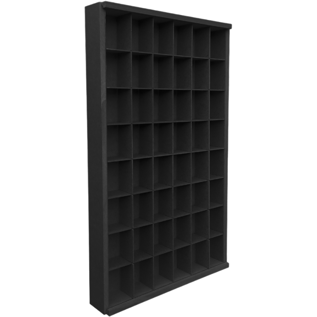 Expositor Em MDF Pintado em Preto Para Copos Shots Com 48 nichos e Com Tampa em Acrílico