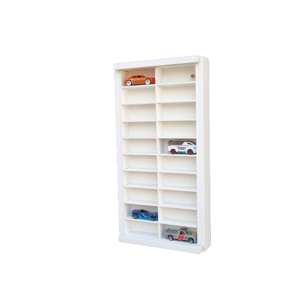Expositor para 20 nichos 1/64 Branco com tampa em acrílico.