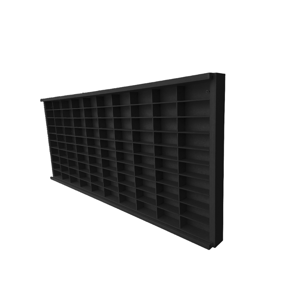 Expositor em MDF Pintado em Preto Para 100 Nichos e Com Tampa em Acrílico Escala 1:64