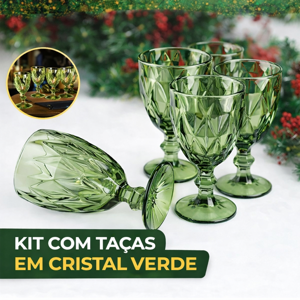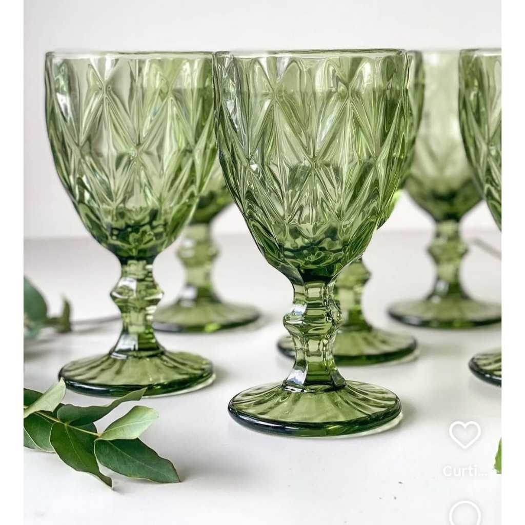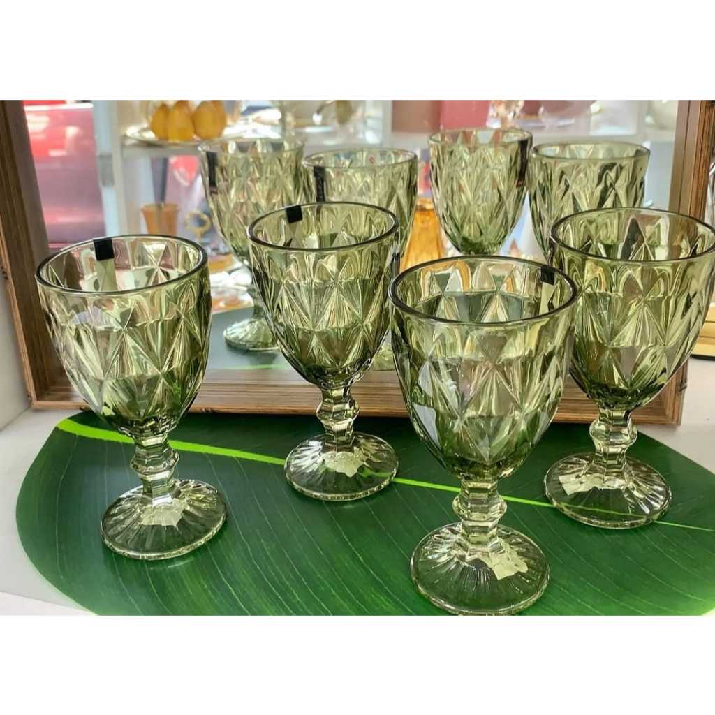 Jogo 2 Taças Diamante Diamond PREMIUM Vidro VERDE Agua Suco 330Ml