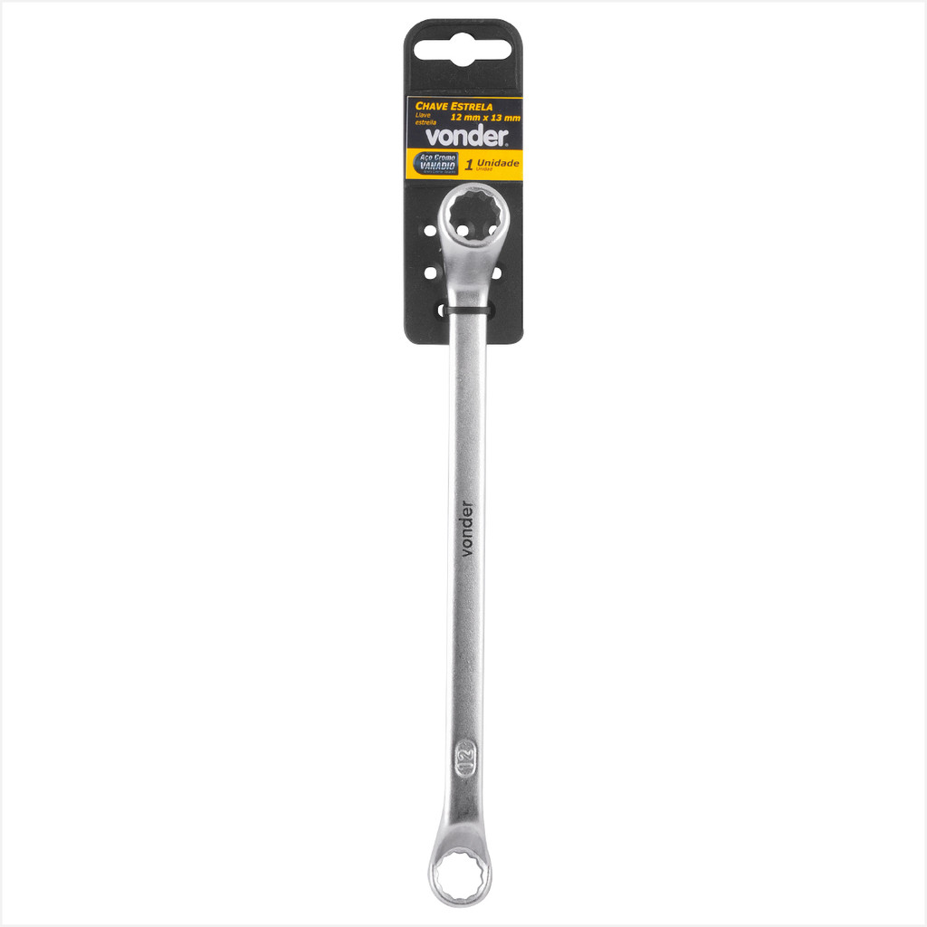 Chave estrela 12 mm x 13 mm aço cromo vanádio encartelada - Vonder