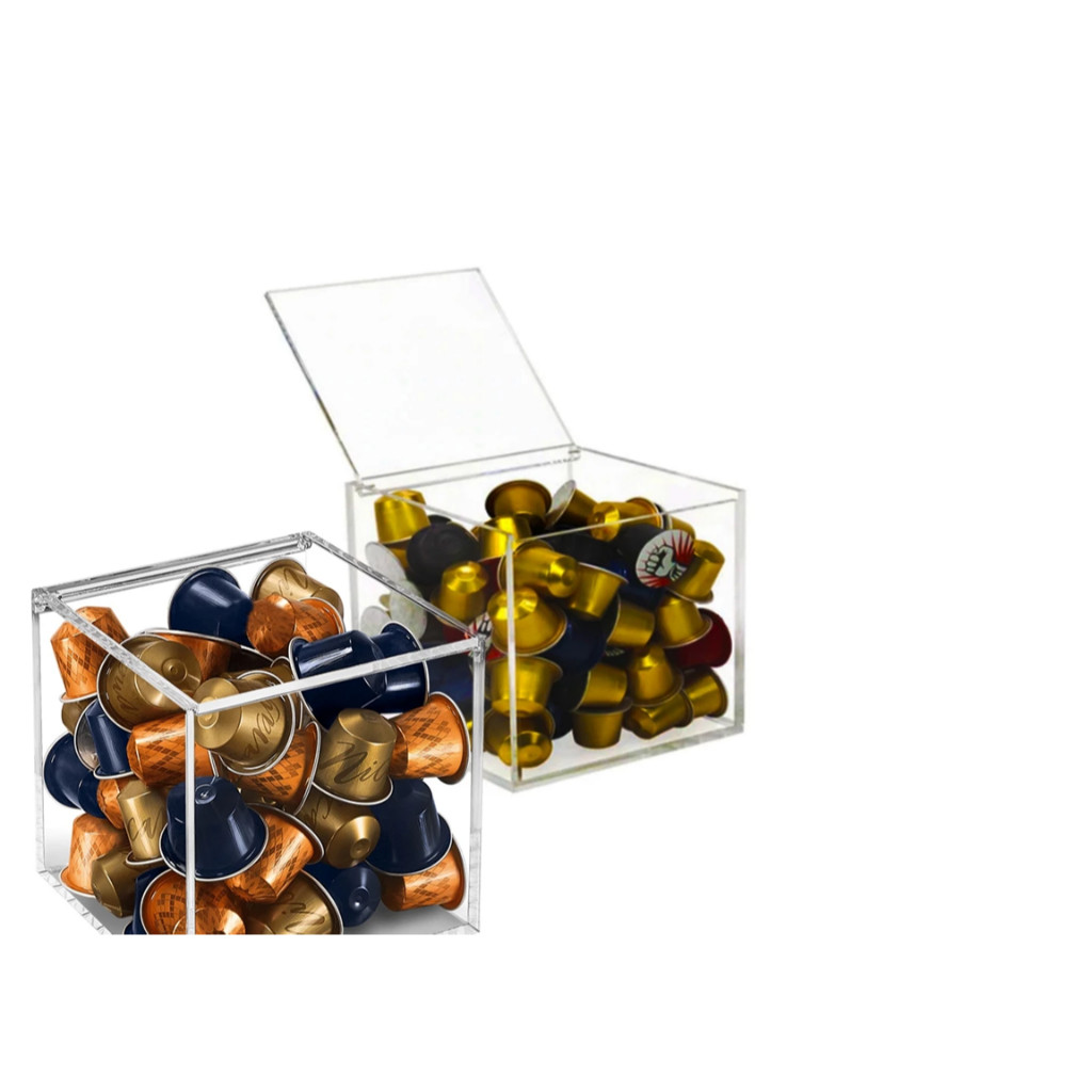 Cubo Personalizado de acrilico Porta Capsulas com tampa articulada 13x13x13