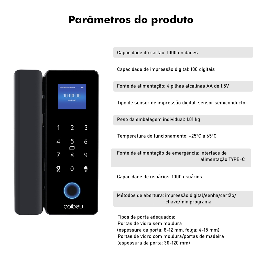 COIBEU Fechadura De Porta Inteligente WiFi Eletrônica De Impressão Digital Para