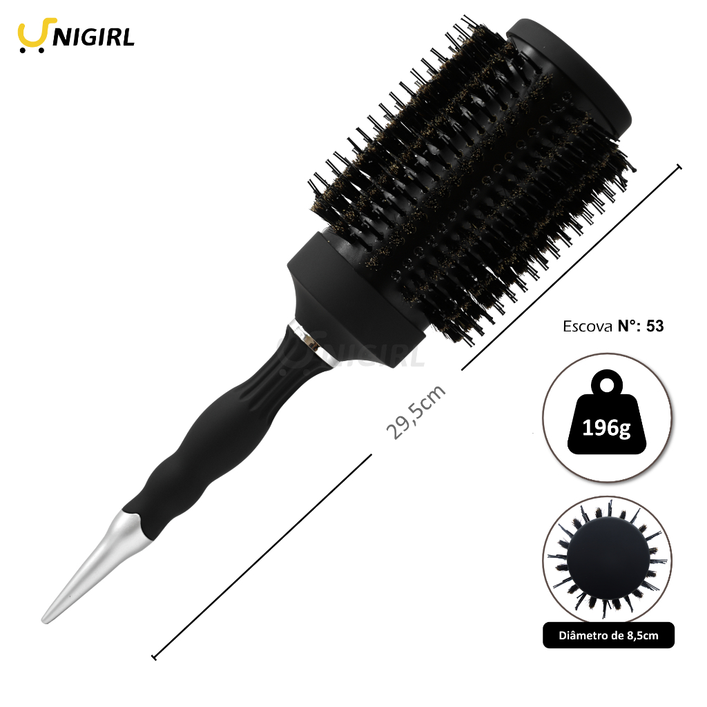 Escova Térmica Carolina Profissional Metalizada Cerdas Mistas Javali Nylon MOFASHI
