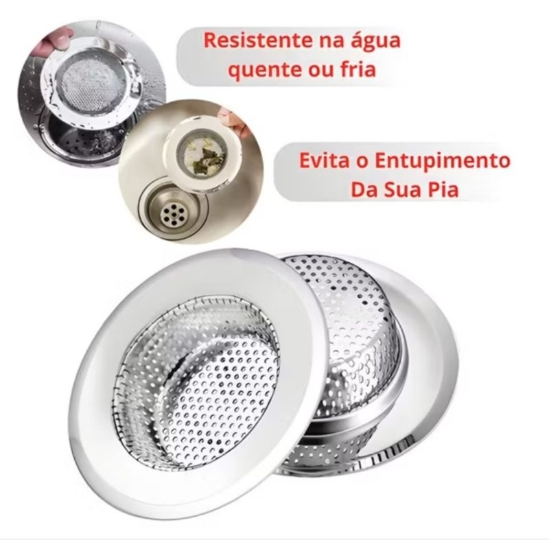 Ralo de Pia Inox 7cm e 9cm – Borda Inoxidável, Anti-Entupimento, Cozinha, Pia, Filtro Inox Premium