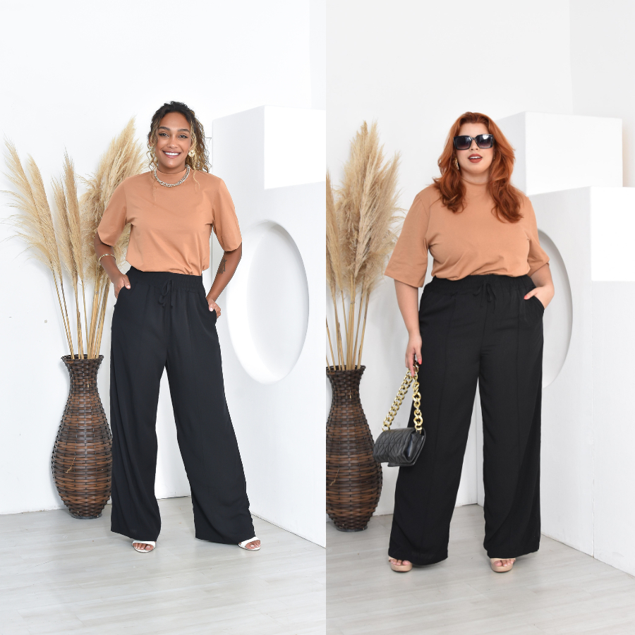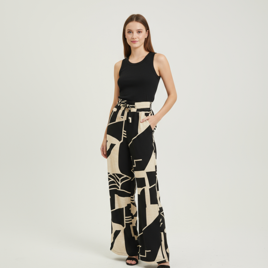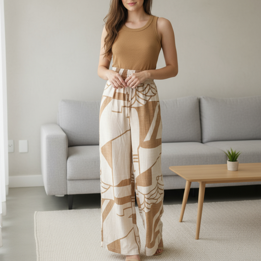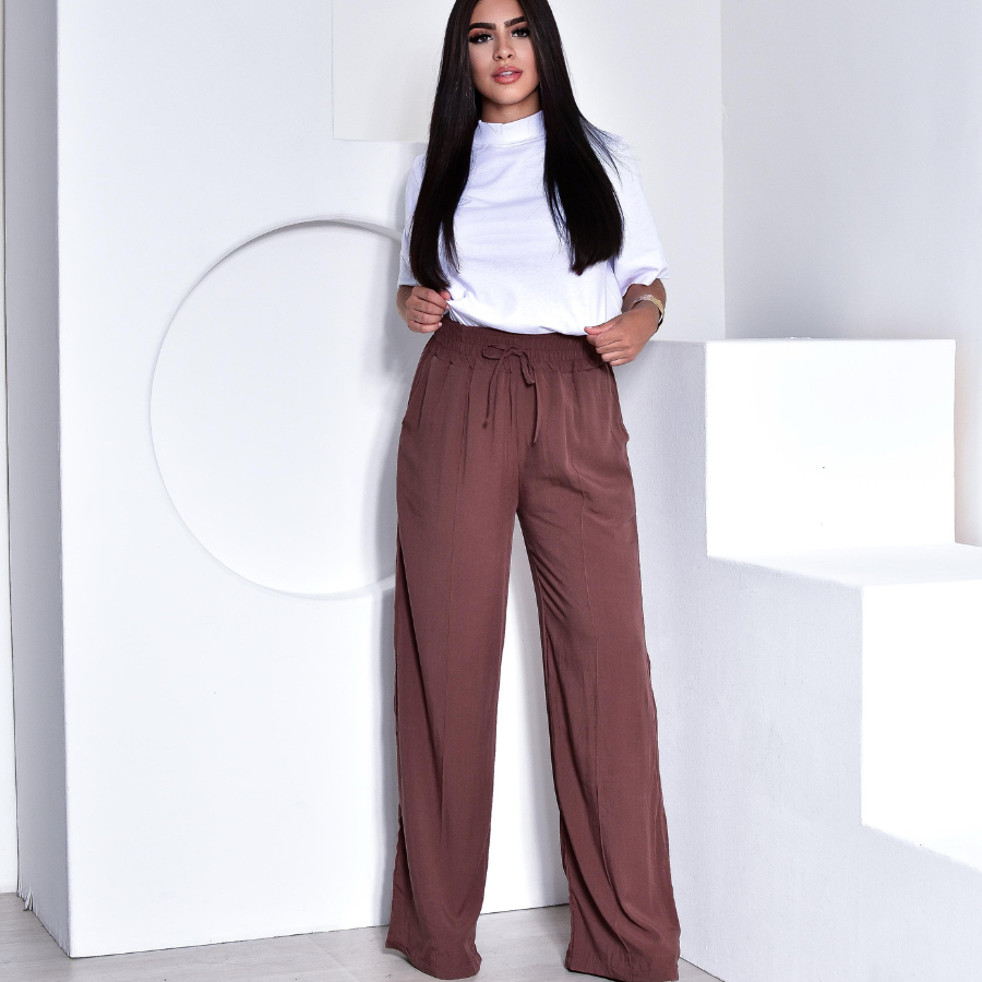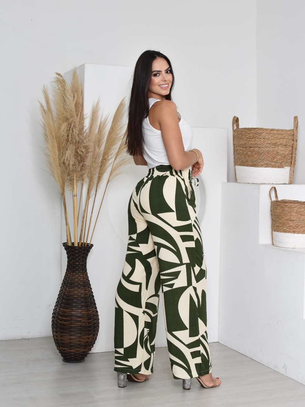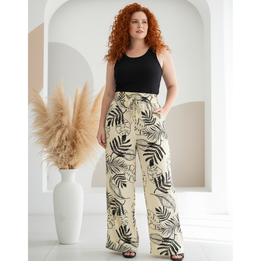 "Calça Pantalona Feminina Estampada Cintura Alta Soltinha Confortável Casual Verão