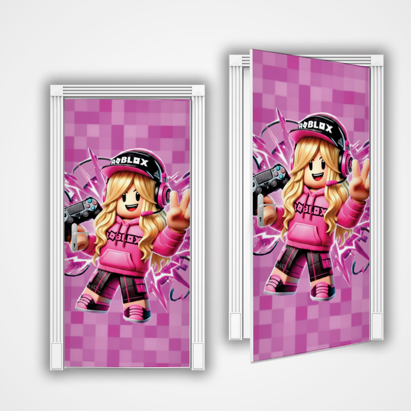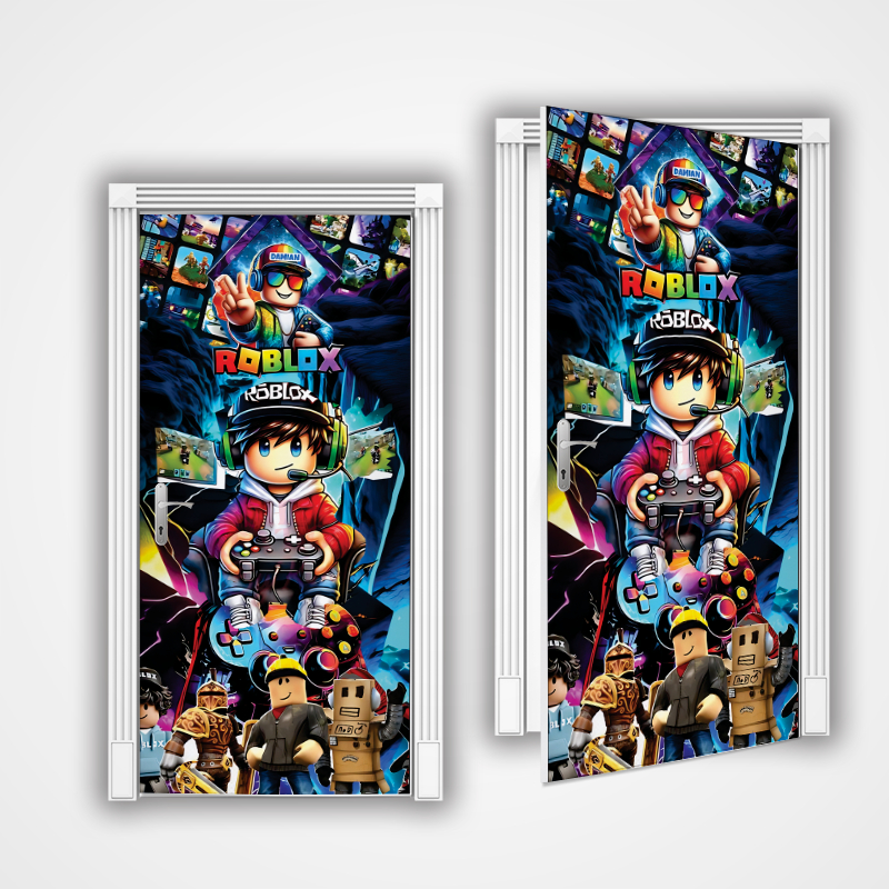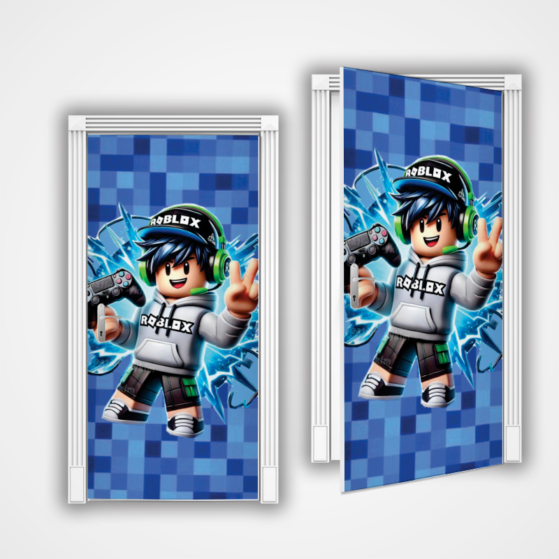 Capa de Porta Decoração Infantil Roblx para Quarto Sala Tecido Sublimado C/Elástico 0,85x2,1m