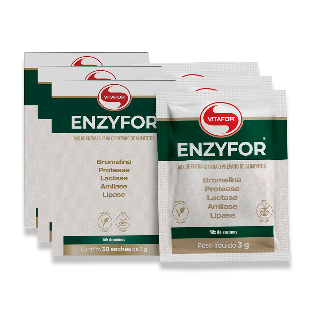 Kit 3 Enzyfor Enzimas Digestivas Vitafor 30 Sachês