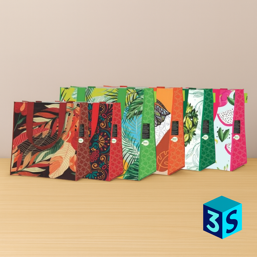 KIT com 3 ou 6 Sacolas De Ráfia Ecológica Retornável Ecobag
