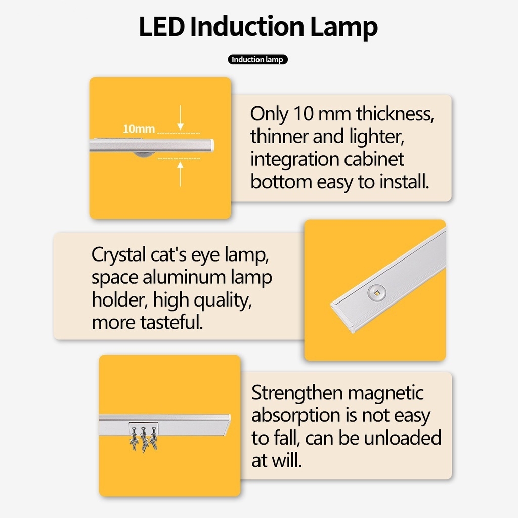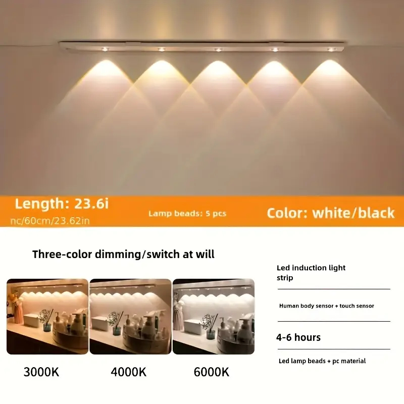 60 cm Ultra fino diodo emissor de luz / armário lâmpada sensor de movimento sem fio usb recarregável luz 3 cores
