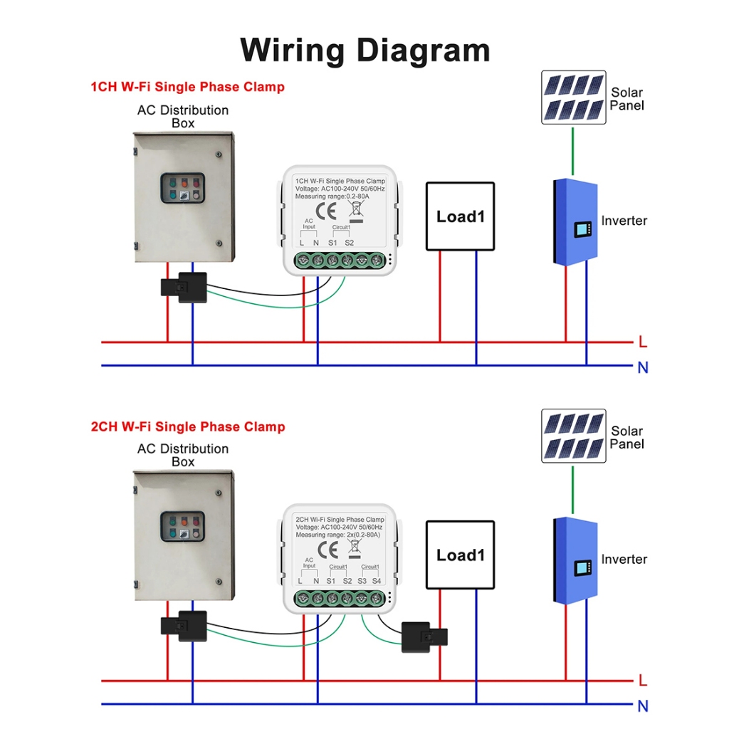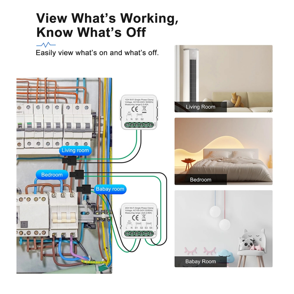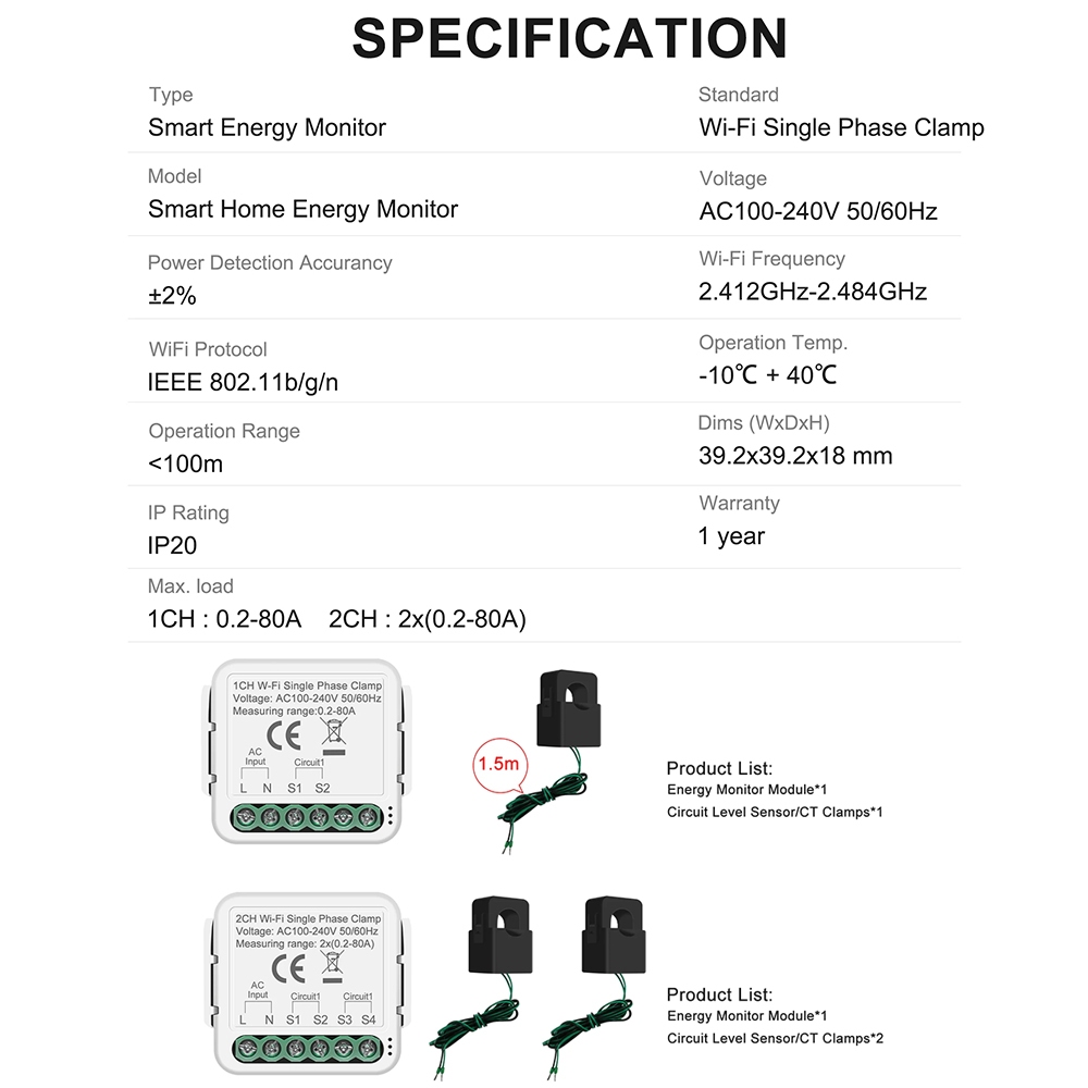 Tuya WiFi 1 2 Gangue 80A Medidor De Energia Inteligente Com Grampo De Sensor De Corrente Monitor Elétrica De Controle De Vida Estatísticas Equipamento