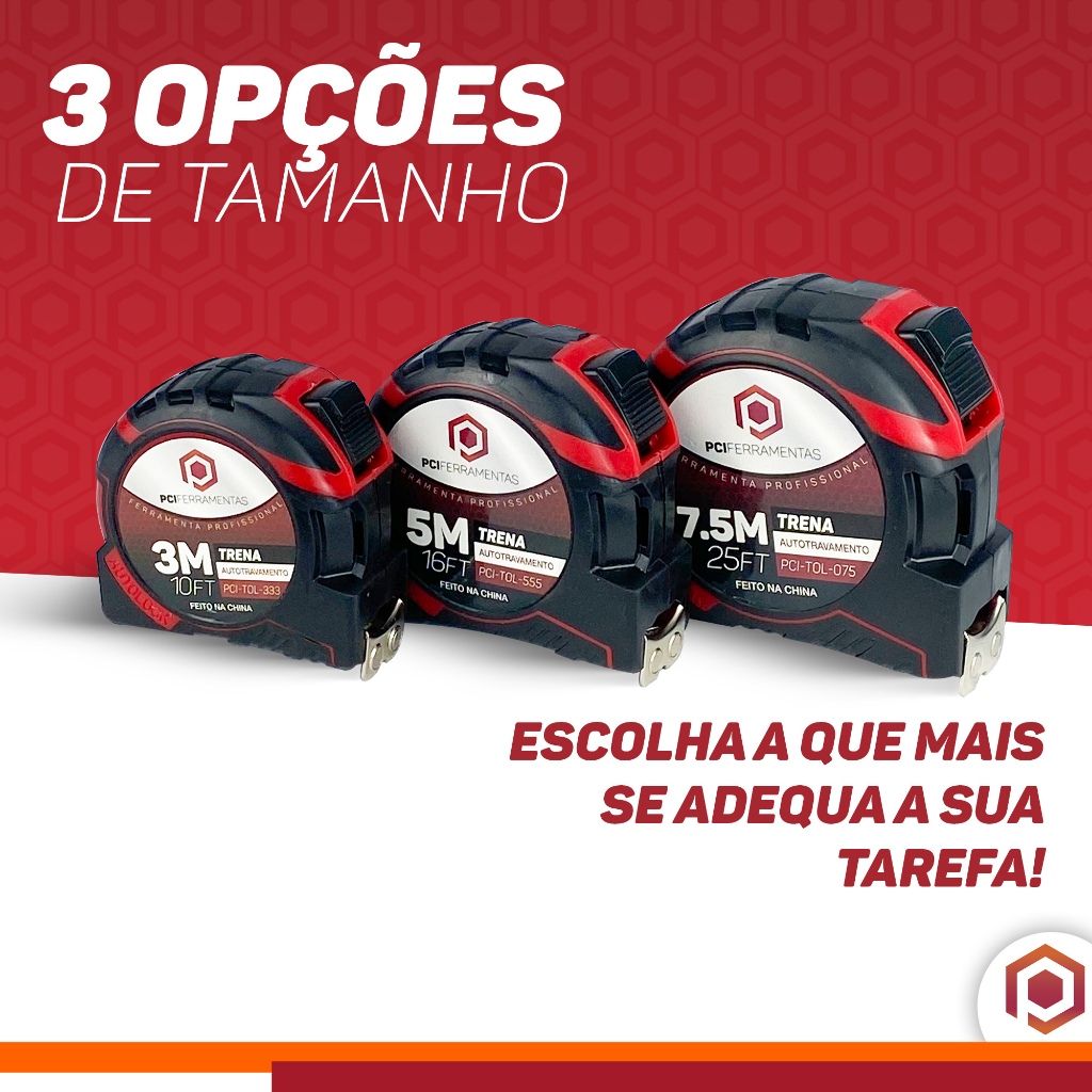 Fita Métrica 7.5 Metros Auto Trava Alta Precisão Trena Metal Emborrachada