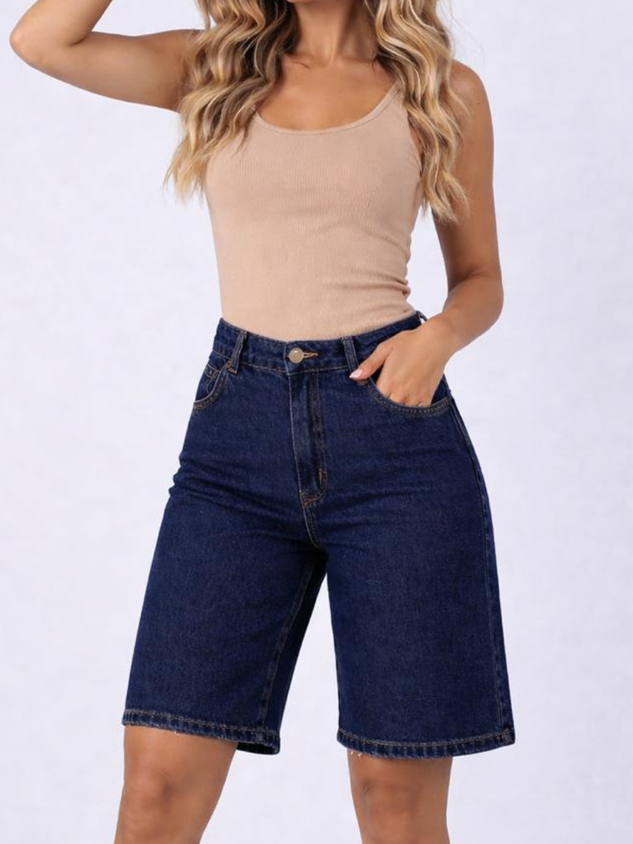 Short Feminino Cintura Alta Jort Jeans 100% Algodão Ciclista