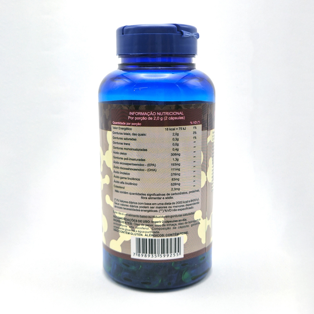 Kit 2x Omega 3 6 9, 120 Capsulas de 1g. (Óleo de Peixe, Borragem e Linhaça) Vitale
