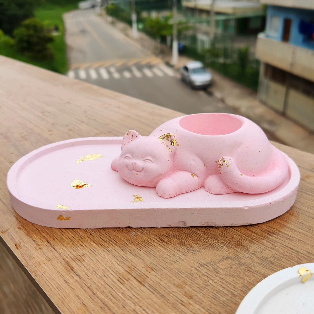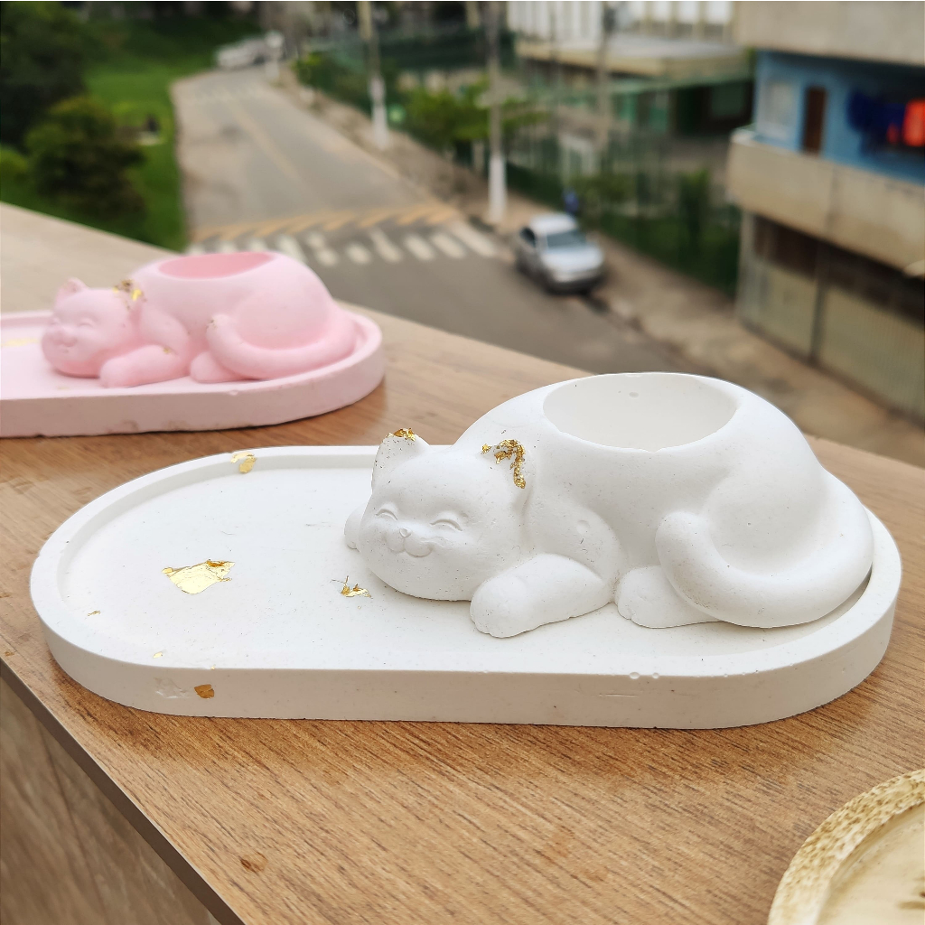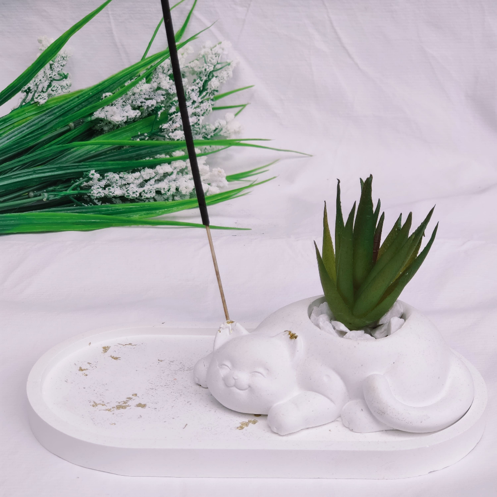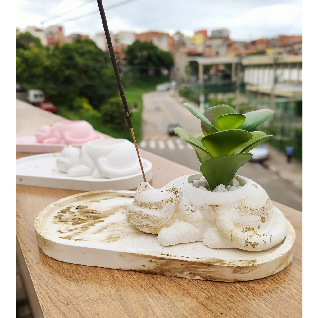 Kit Gatinho Bandeja Oval + Incensario Porta Incenso