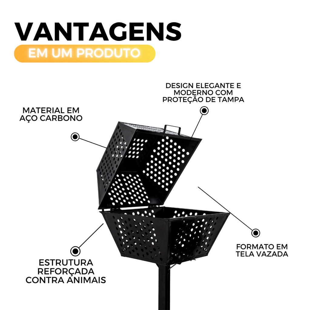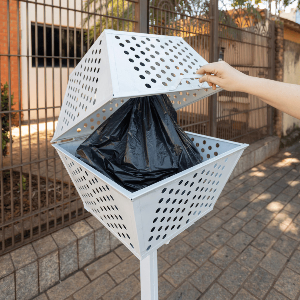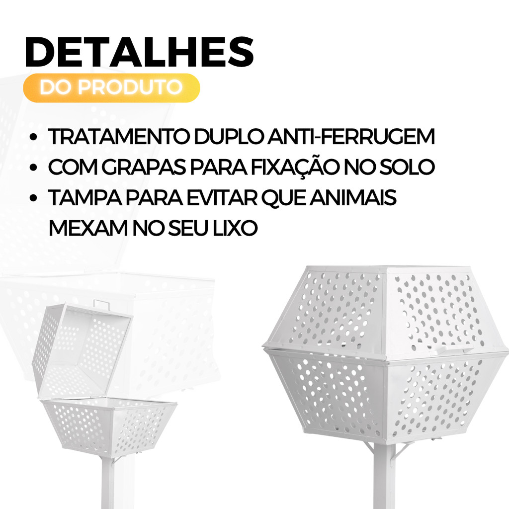 Lixeira Urbana De Rua Com Tampa Embutida Em Aço Reforçado Para Uso Externo Calçada