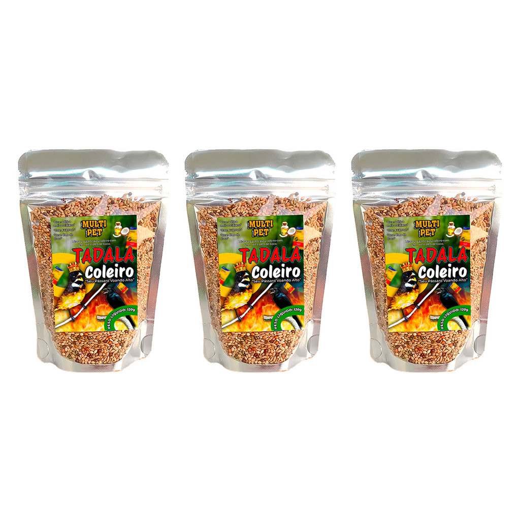Ração Tadala Coleiro Óleo Coco 120g Mistura Quente FertVit Anticoccidiano Pássaros Papa capim baiano