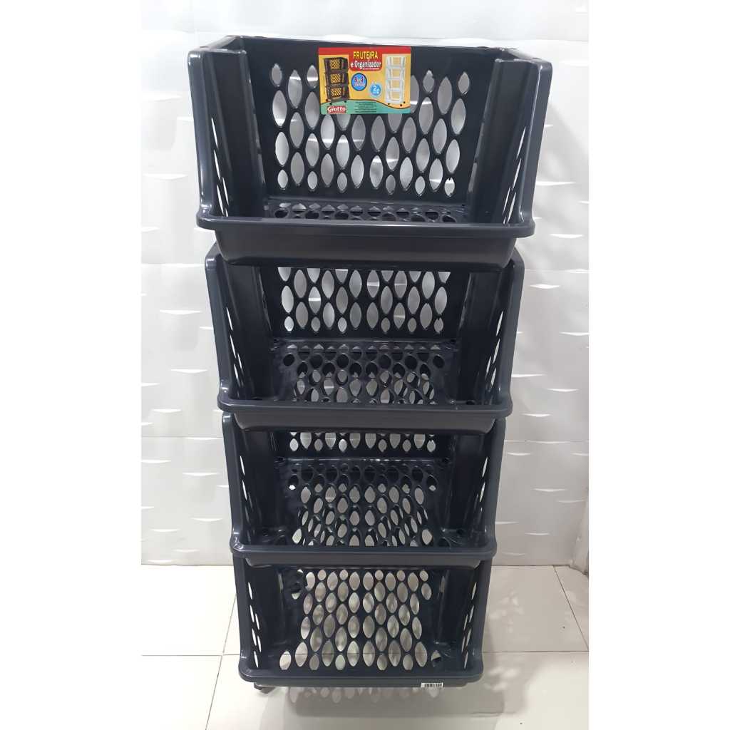 Cesto Organizador Multiuso de Plástico 04 andares Empilhável Expositor com Rodinhas
