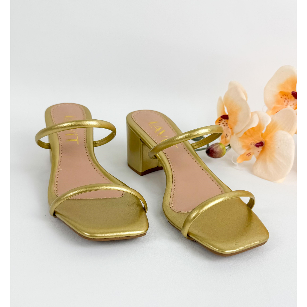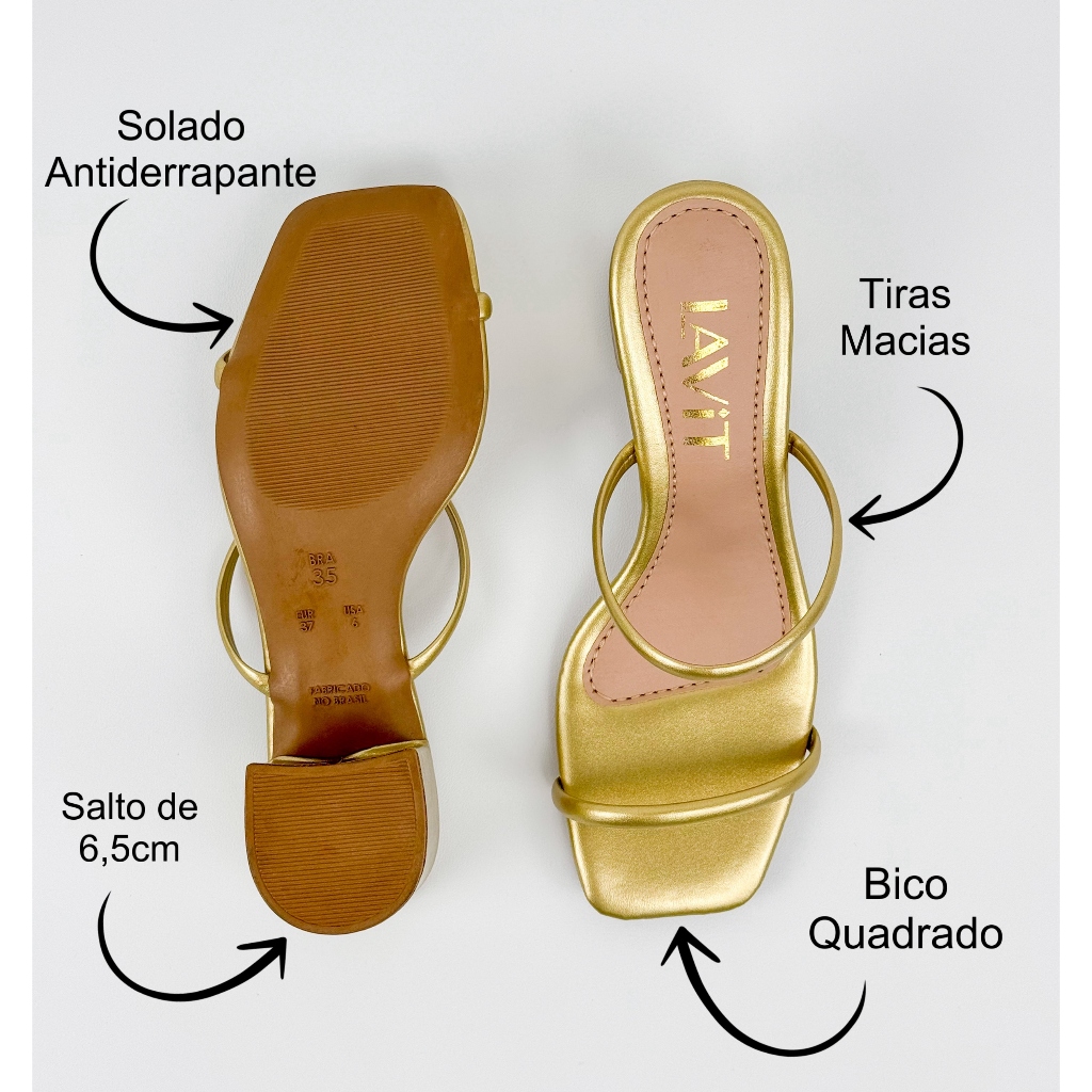 Salto Bloco Prata - Sandália Feminina dourada - Saltinho bloco dourado - Tamanco Dourado - 0061