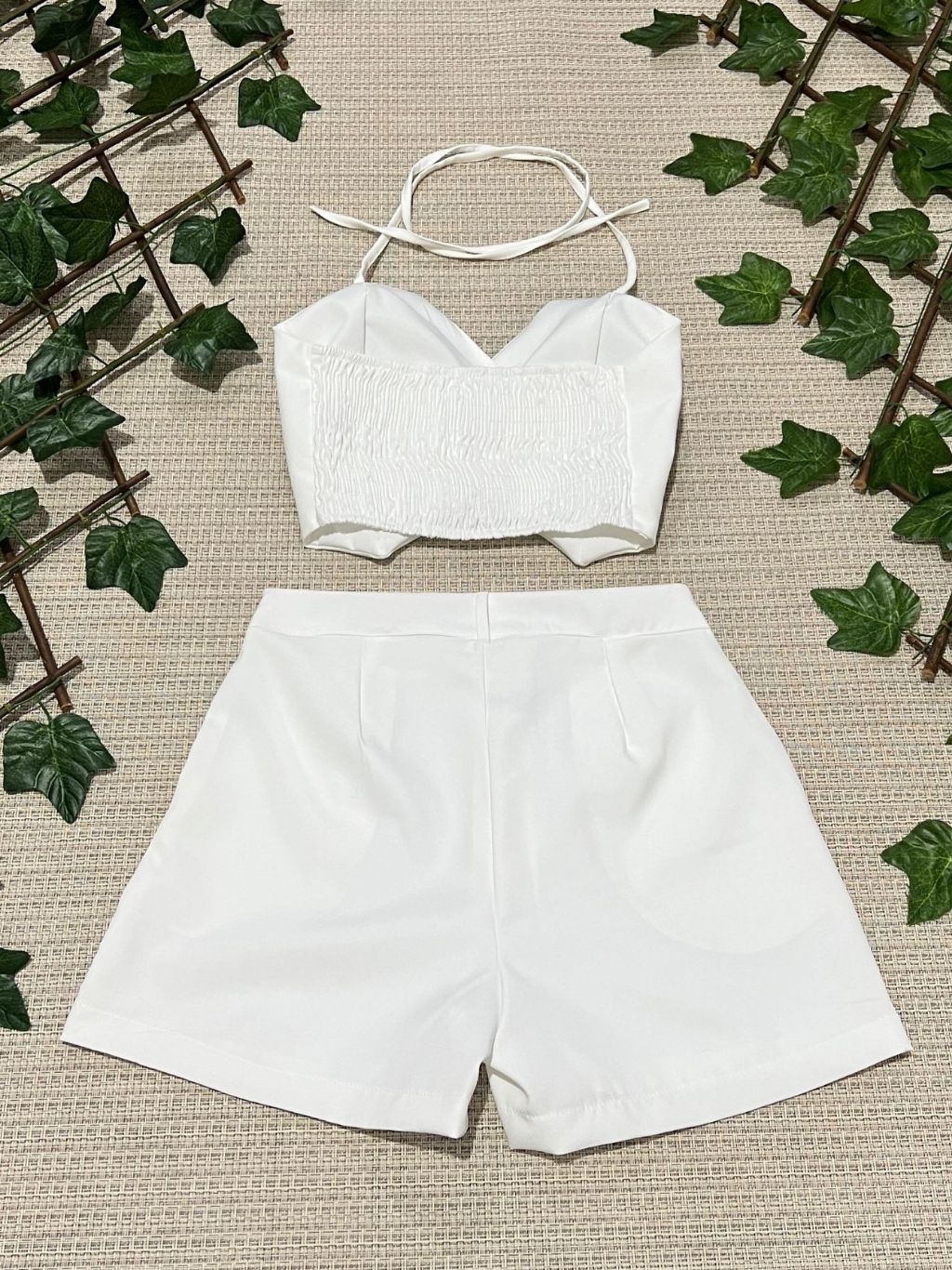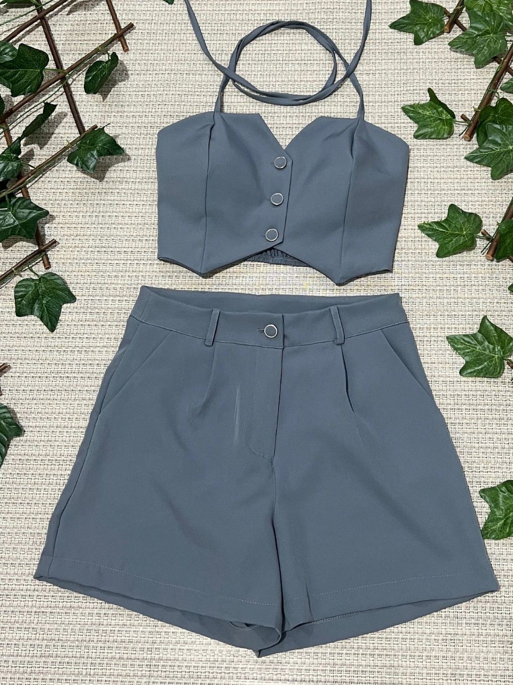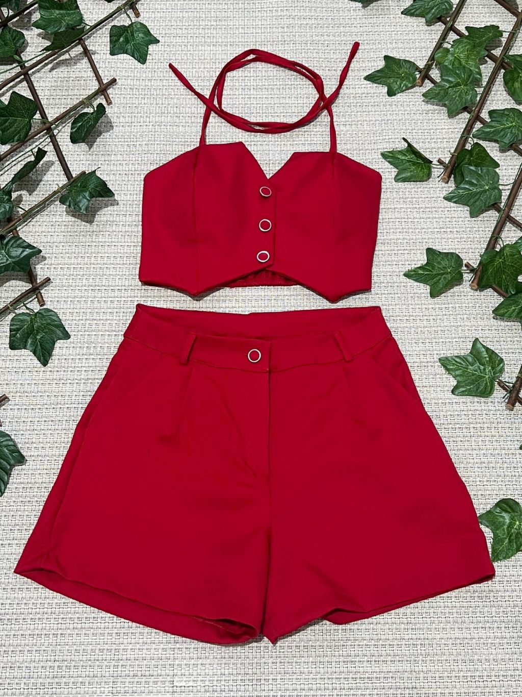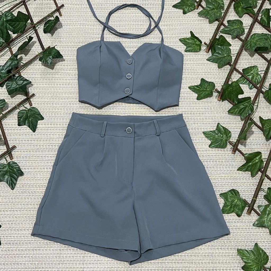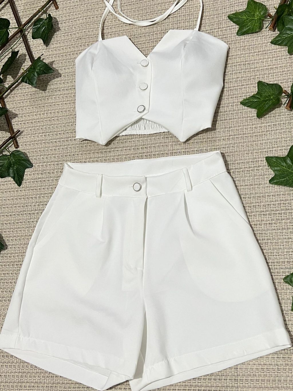 Conjunto feminino alfaiataria simples casual tecido cropped 3 botões com short diário moda verão
