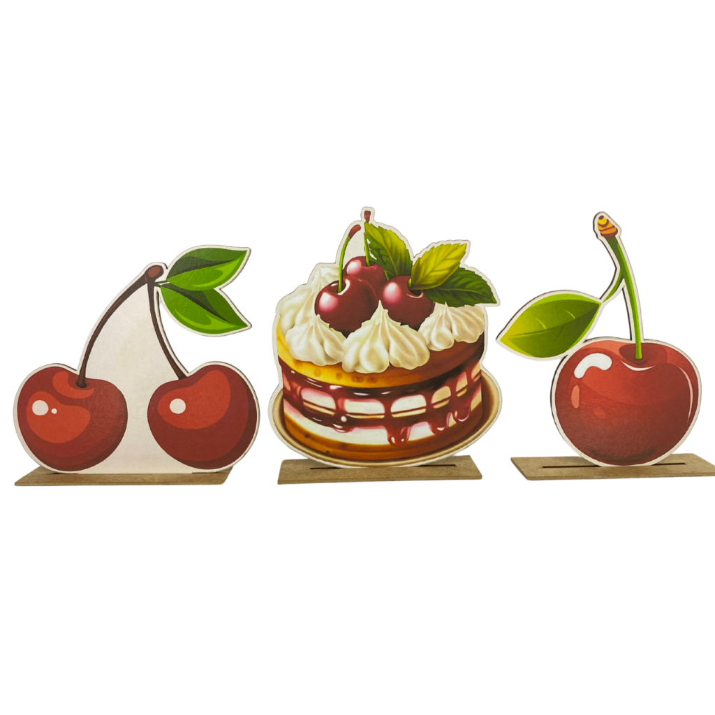 Kit Display de Mesa 6 Peças para Festa Cereja MDF