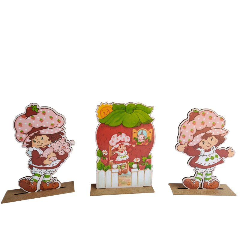Kit Display de Mesa 6 Peças Para Festa Moranguinho Vintage MDF
